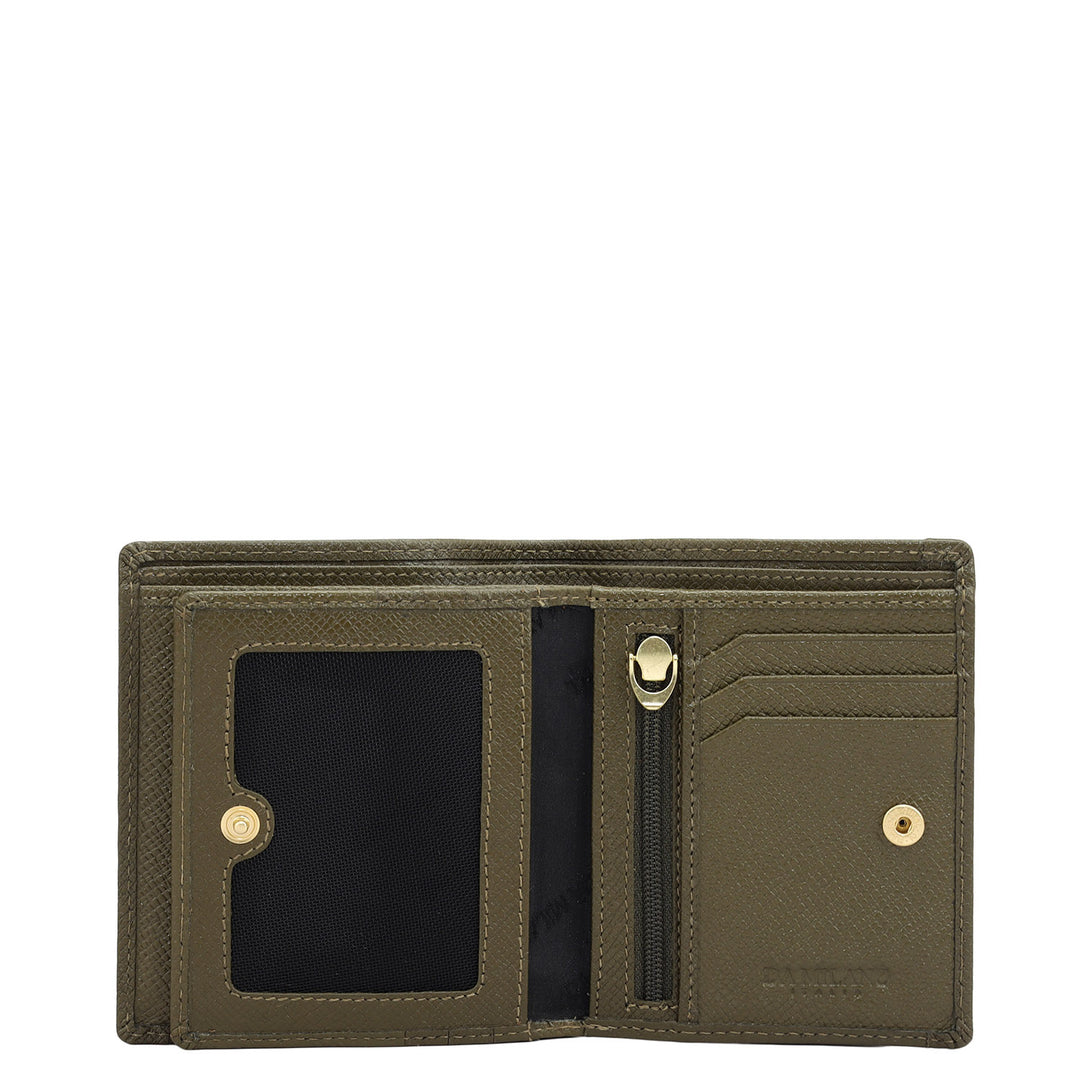 Crafted from textured leather, Da Milano men's bifold wallet offers a compact yet stylish design. Featuring easy-to-organize compartments, card slots, and pockets, it combines practicality with elegance. Subtle branding on the front enhances its refined appearance.