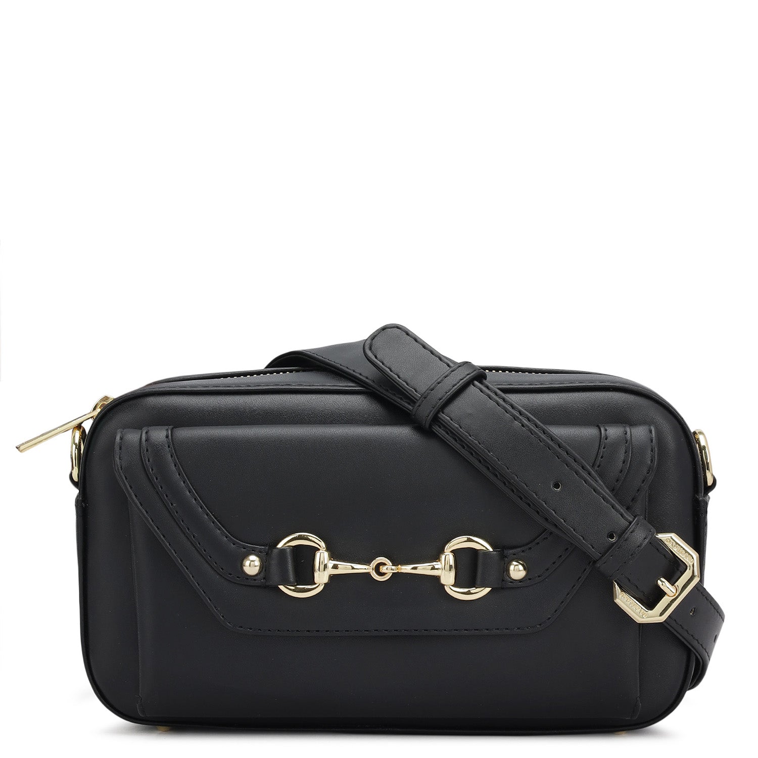 Minimal yet refined, the Classic Leather Sling Bag in black is a perfect blend of clean design and thoughtful functionality. Crafted in smooth, plain genuine leather, it offers a timeless look enhanced by sleek black accents and polished gold-tone hardware.