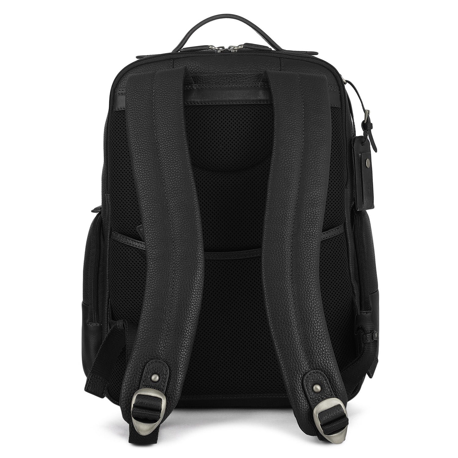 Leather backpack with a play of texture. Featuring multipurpose pockets on the exterior as well as interior to enhance utility. This functional bag is the perfect fusion of Italian craftsmanship and contemporary style. This bag can fit a standard laptop up to 15 inches.