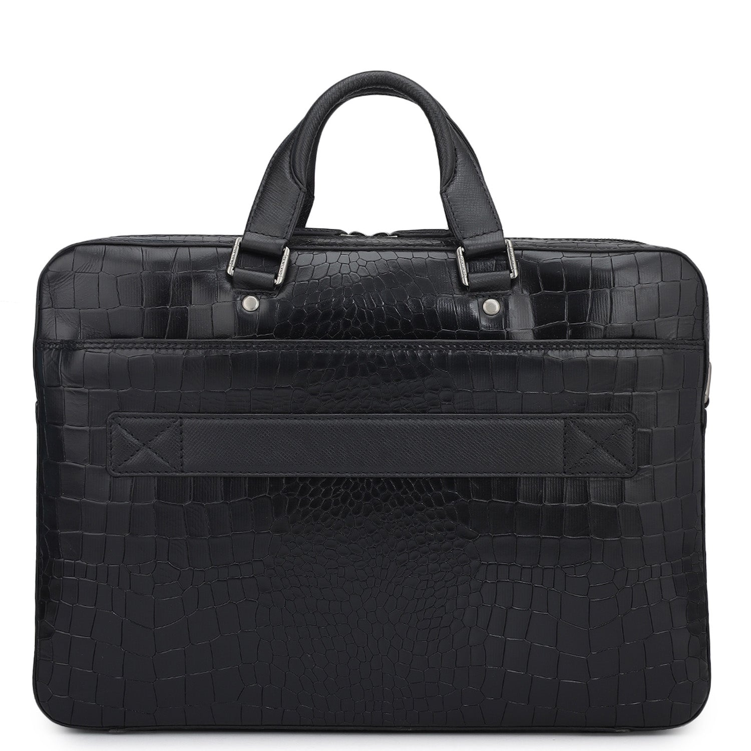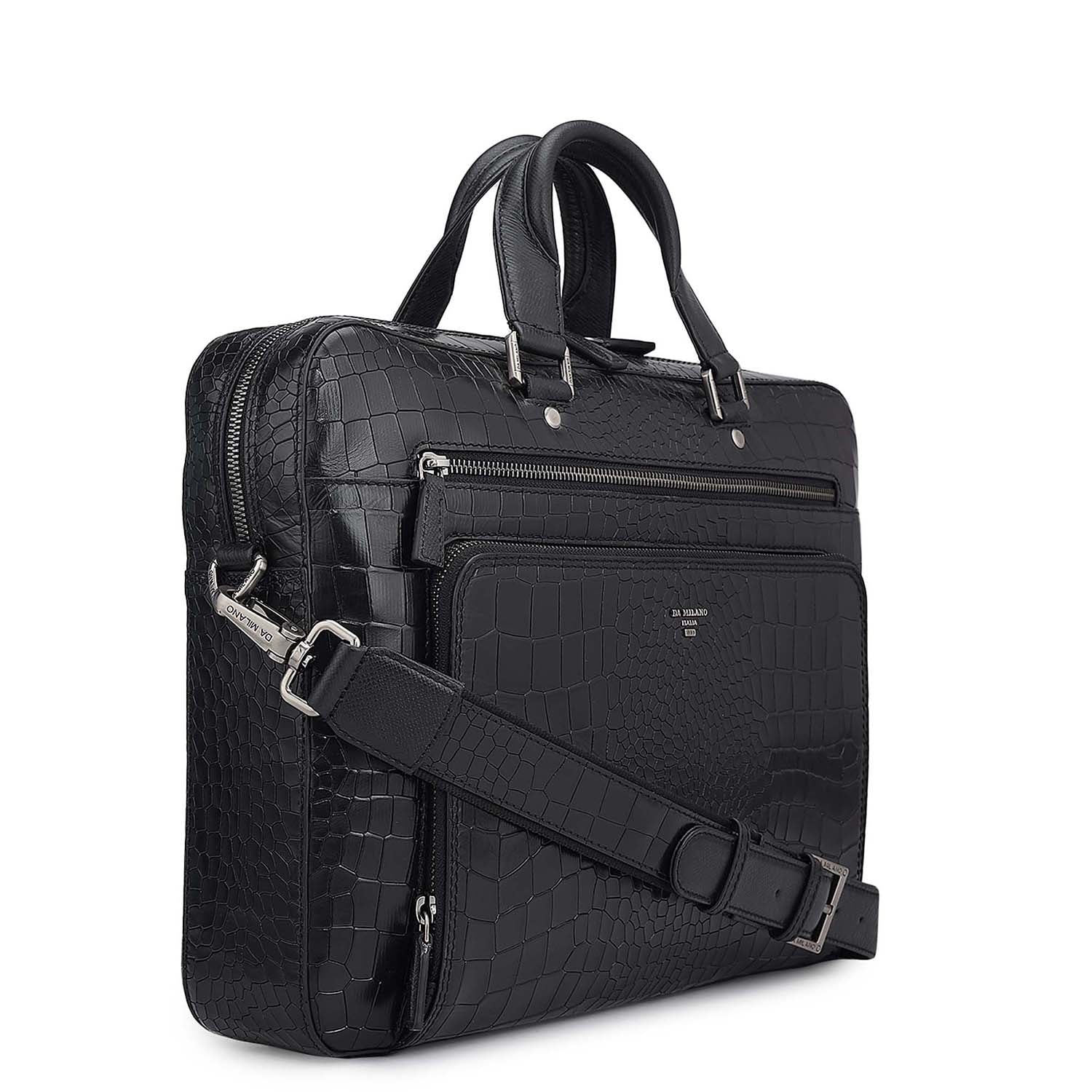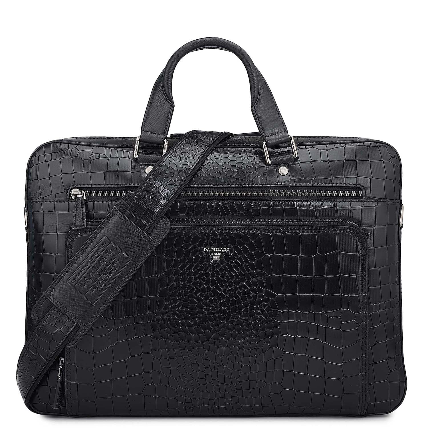 Croco Leather Laptop Bag - Black