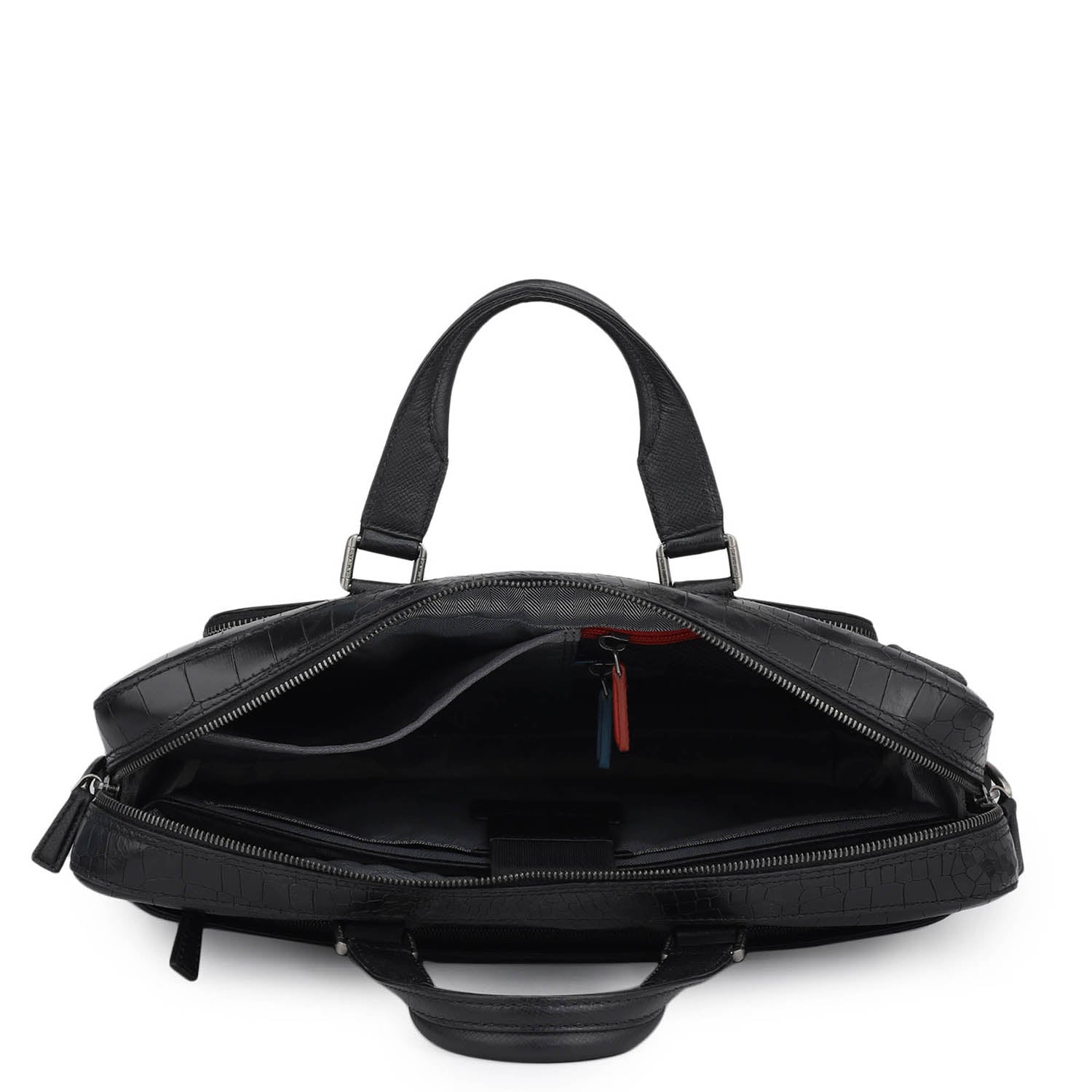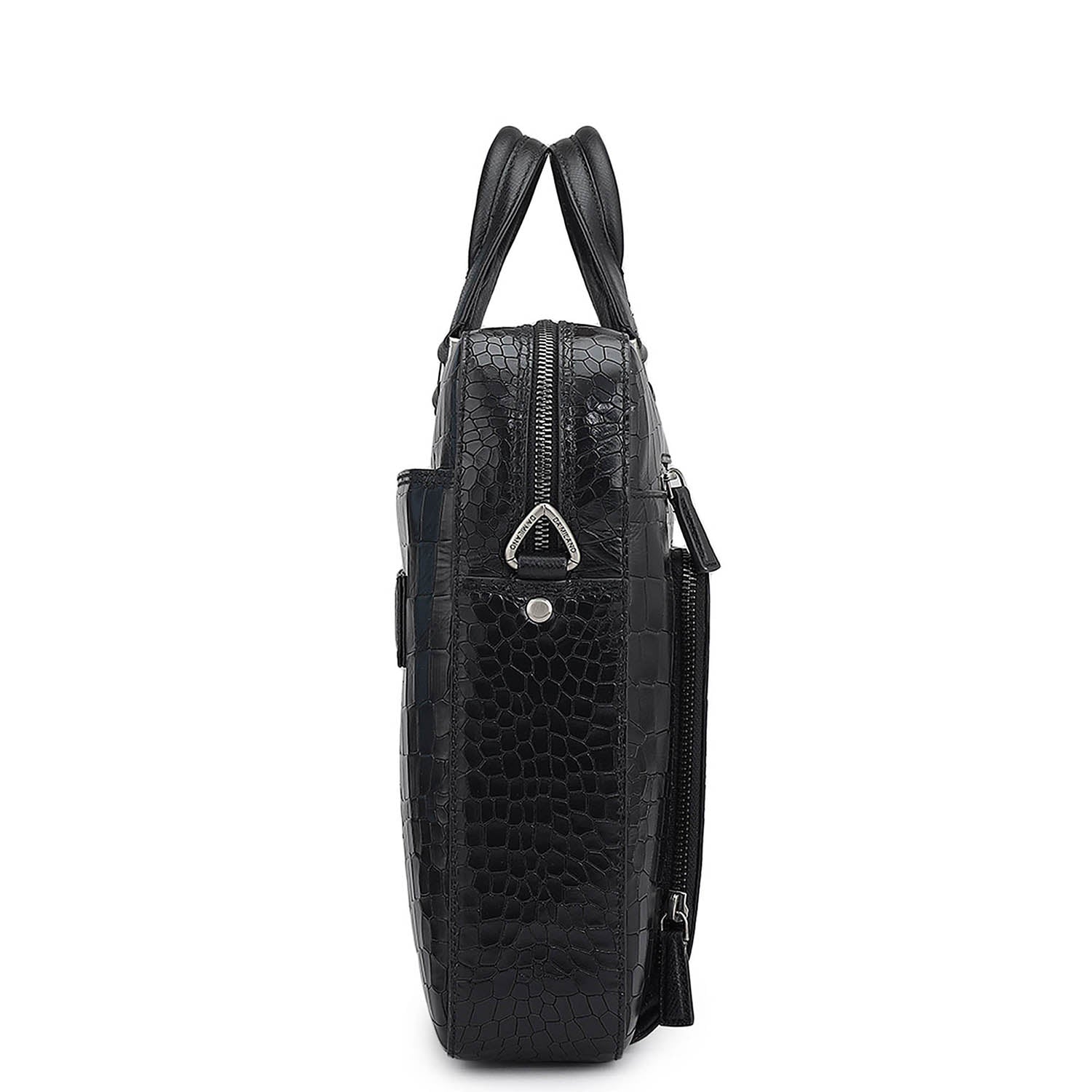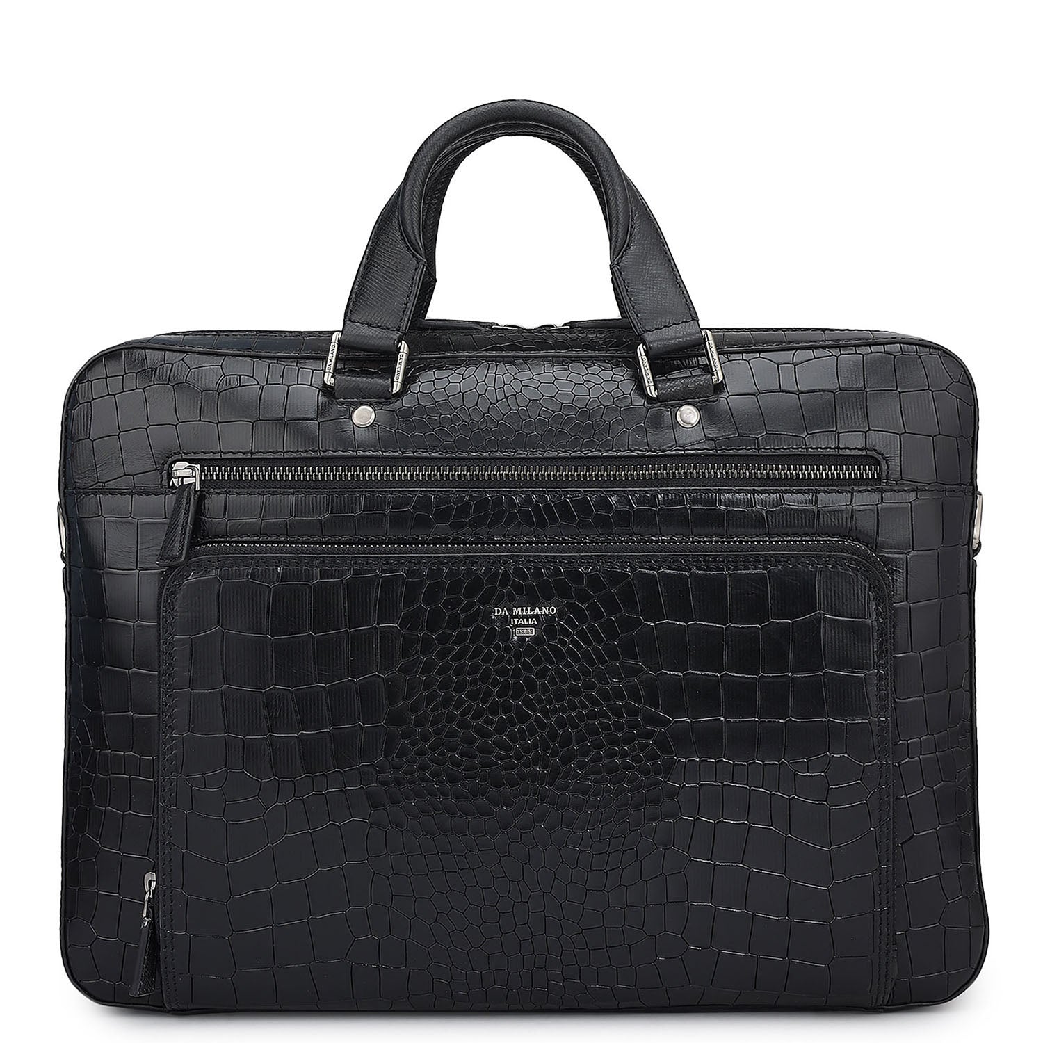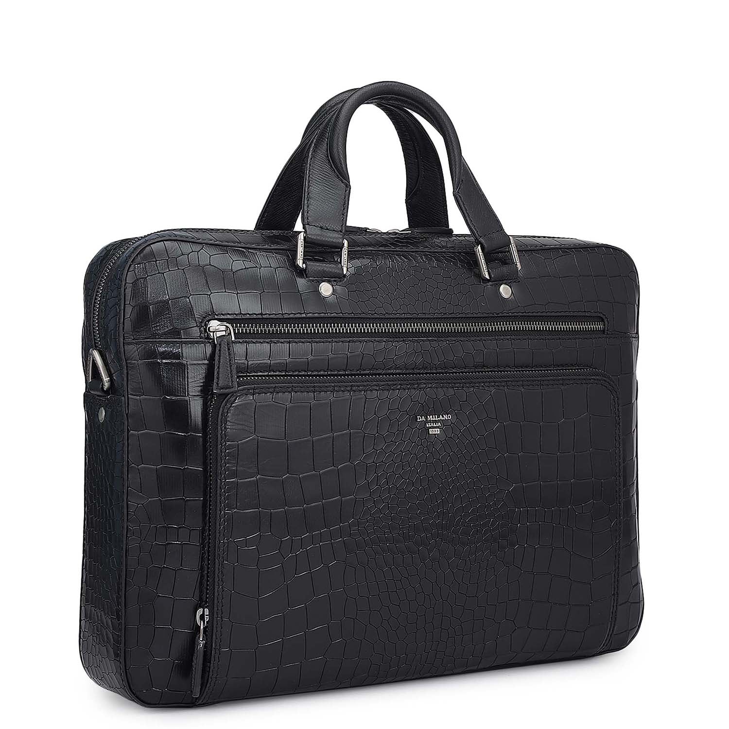 Croco Leather Laptop Bag - Black