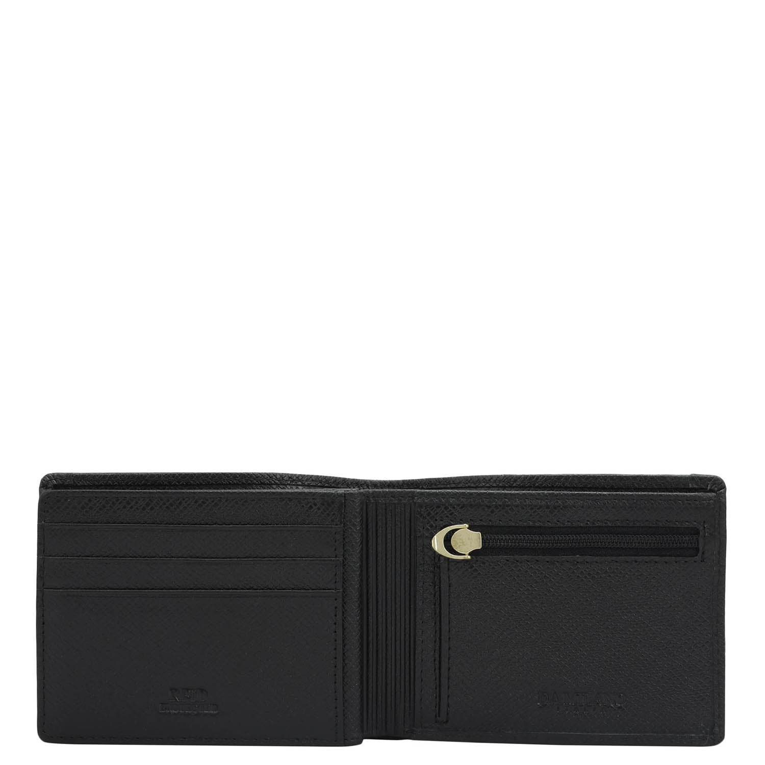 Crafted from textured leather, Da Milano men's bifold wallet offers a compact yet stylish design. Featuring easy-to-organize compartments, card slots, and pockets, it combines practicality with elegance. Subtle branding on the front enhances its refined appearance.