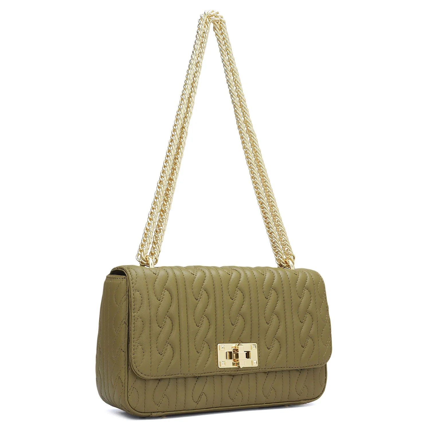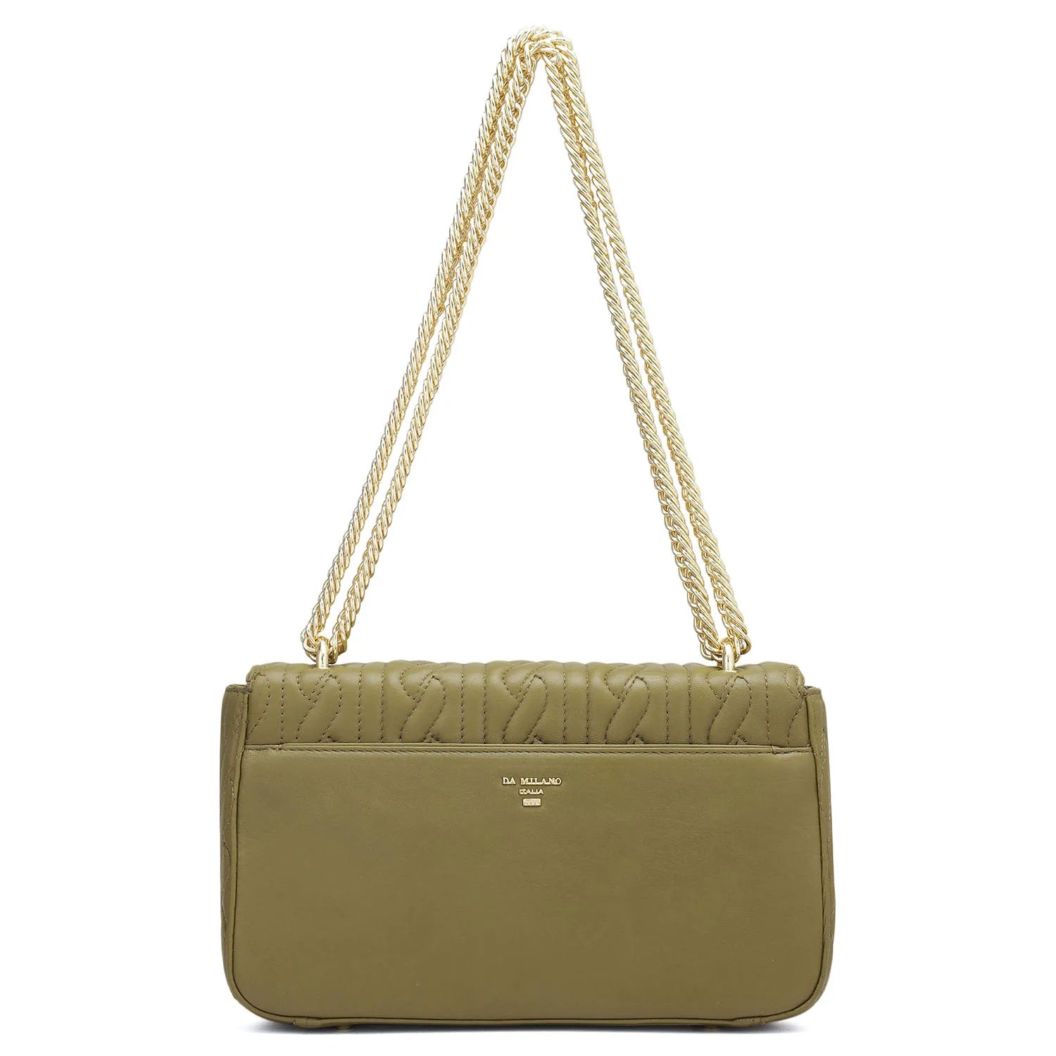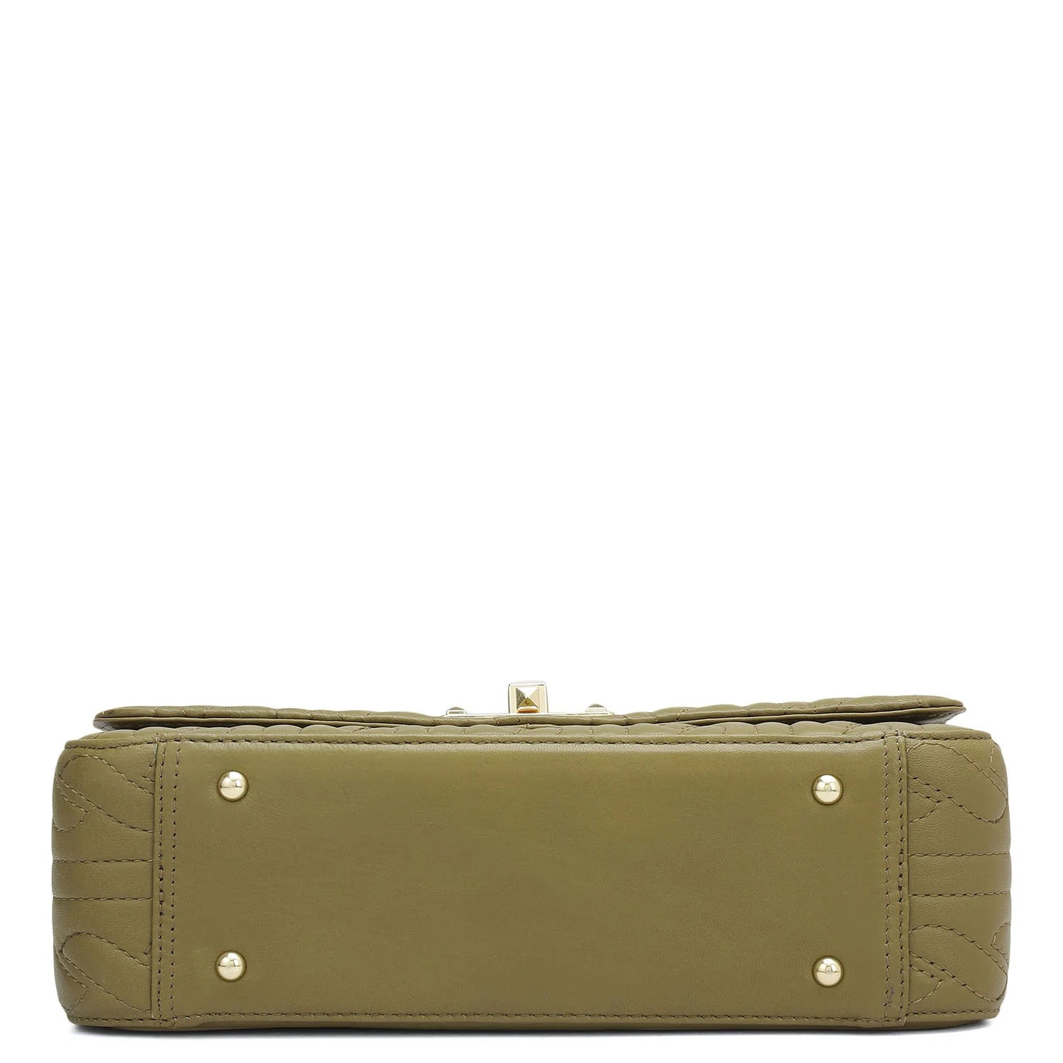 Medium Quilting Plain Leather Shoulder Bag - Olive