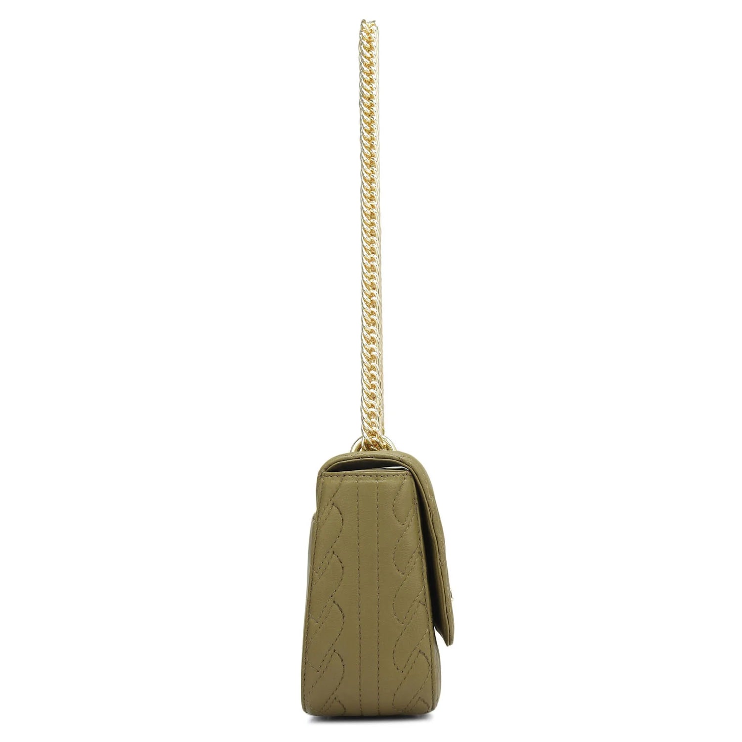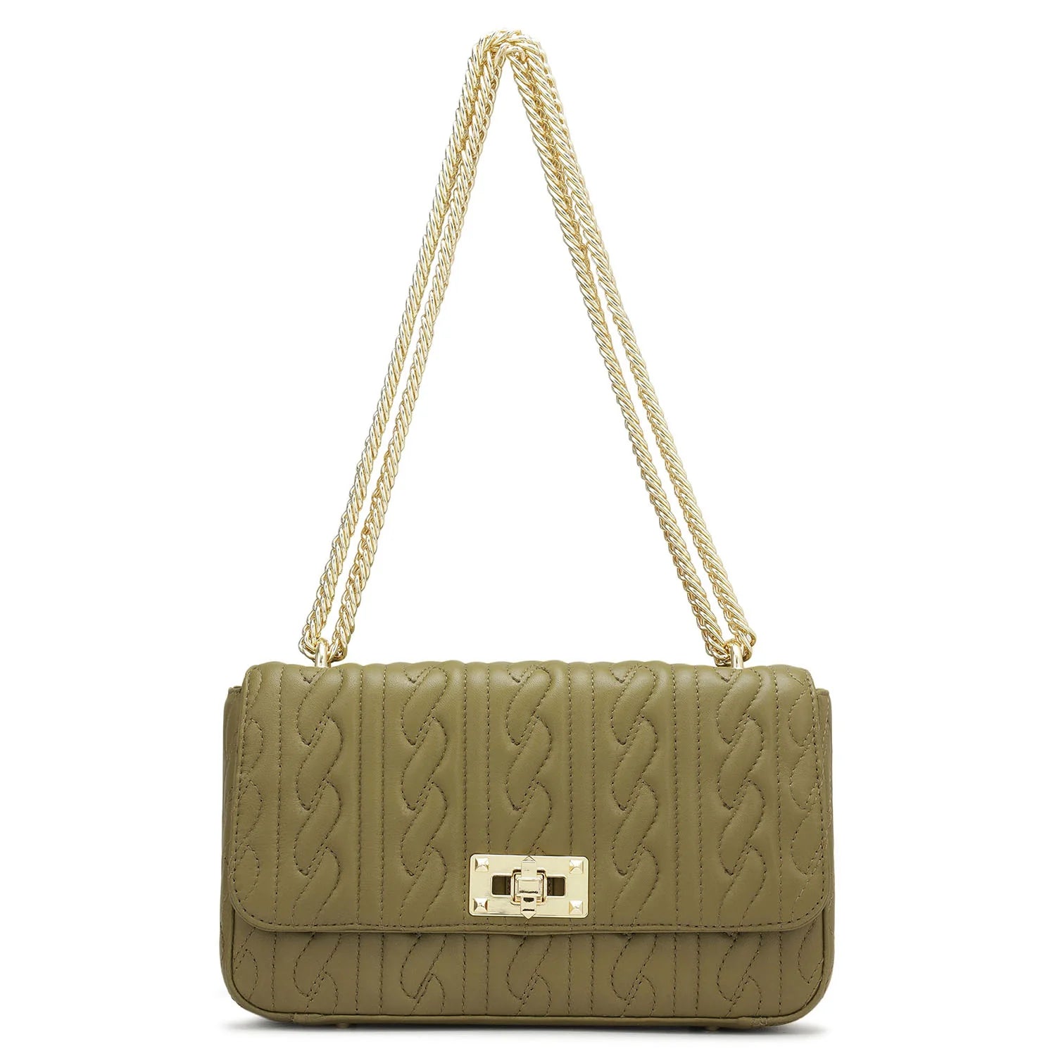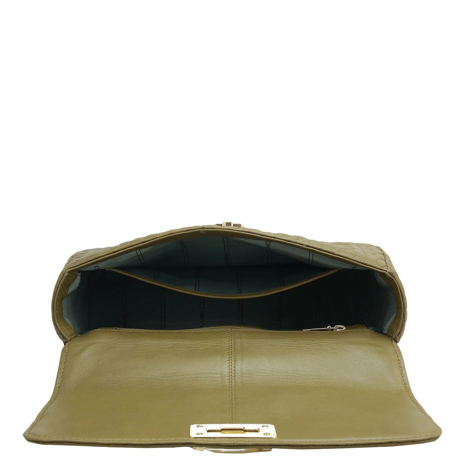 Medium Quilting Plain Leather Shoulder Bag - Olive