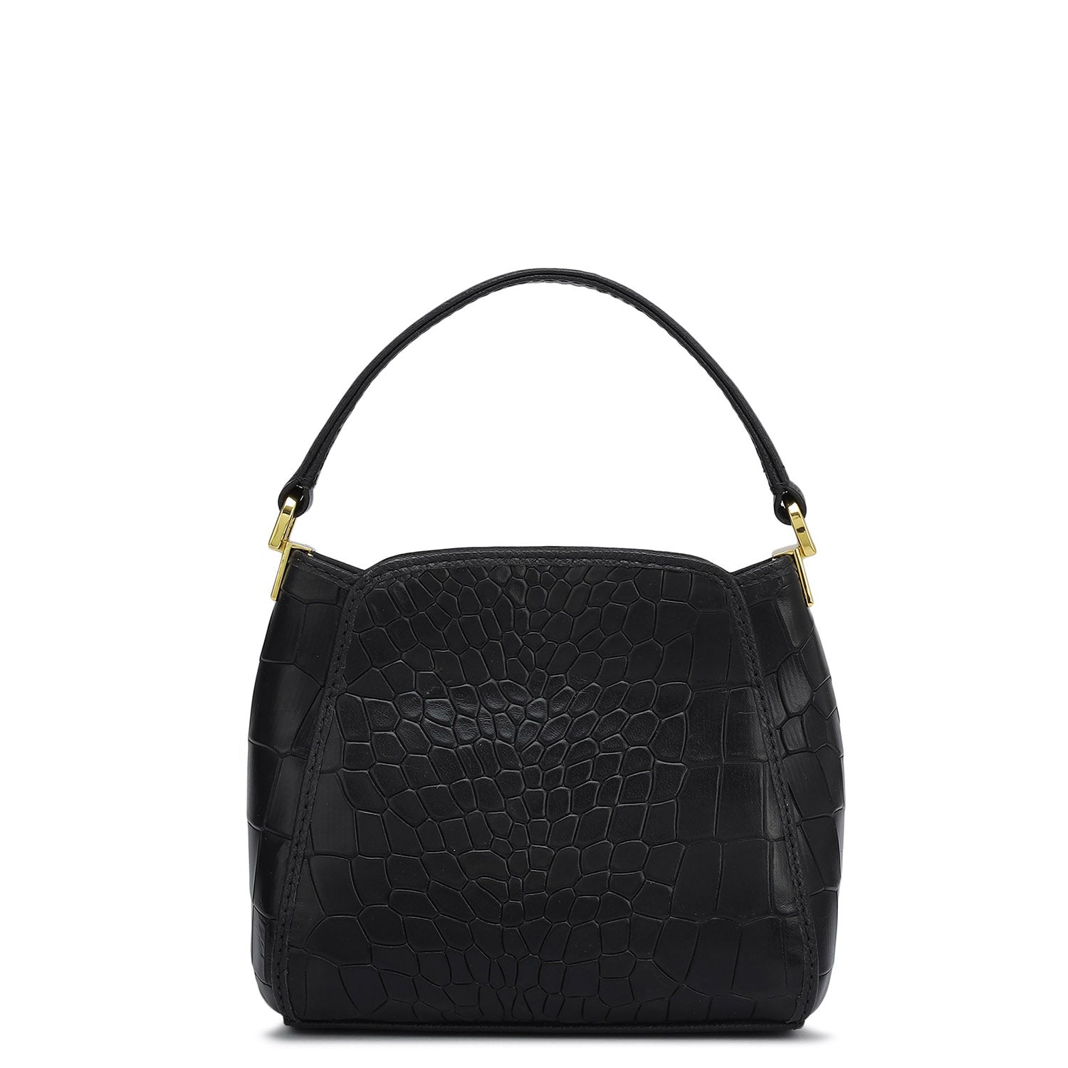 Small Croco Leather Satchel - Black