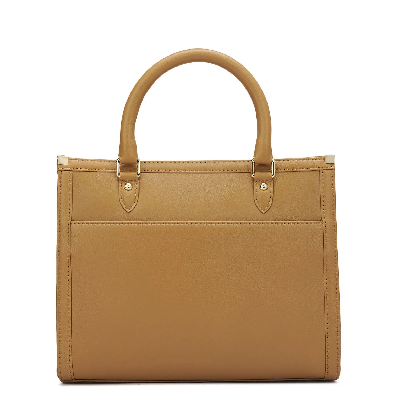 Small Quilting Plain Leather Satchel - Cognac