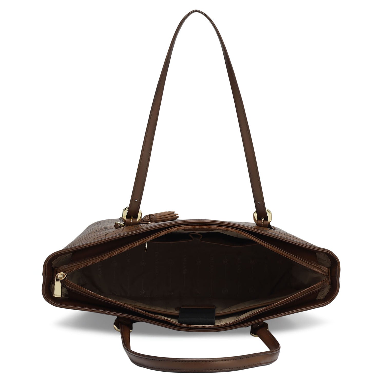 With spacious interior and thoughtfully organized pockets, Da Milano's Leather Tote Bags effortlessly accommodates your everyday essentials with ease. Notebooks, keys, smartphones and other daily essentials, everything finds its place within this meticulously designed accessory. The supple leather exterior lends a luxurious touch, while the sturdy handles ensure comfortable carrying throughout your day. Comes with a detachable shoulder strap, and the bag can fit a standard laptop up to 14 inches.