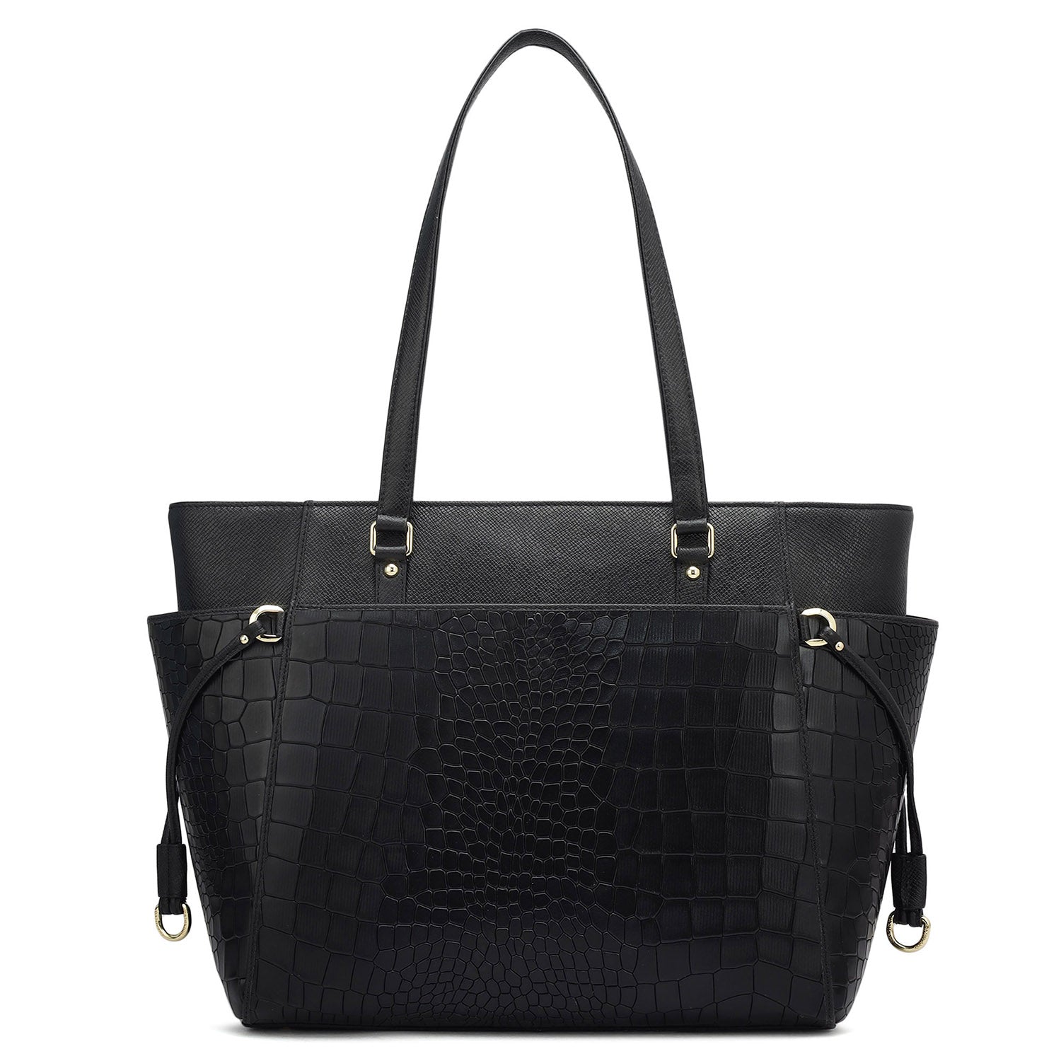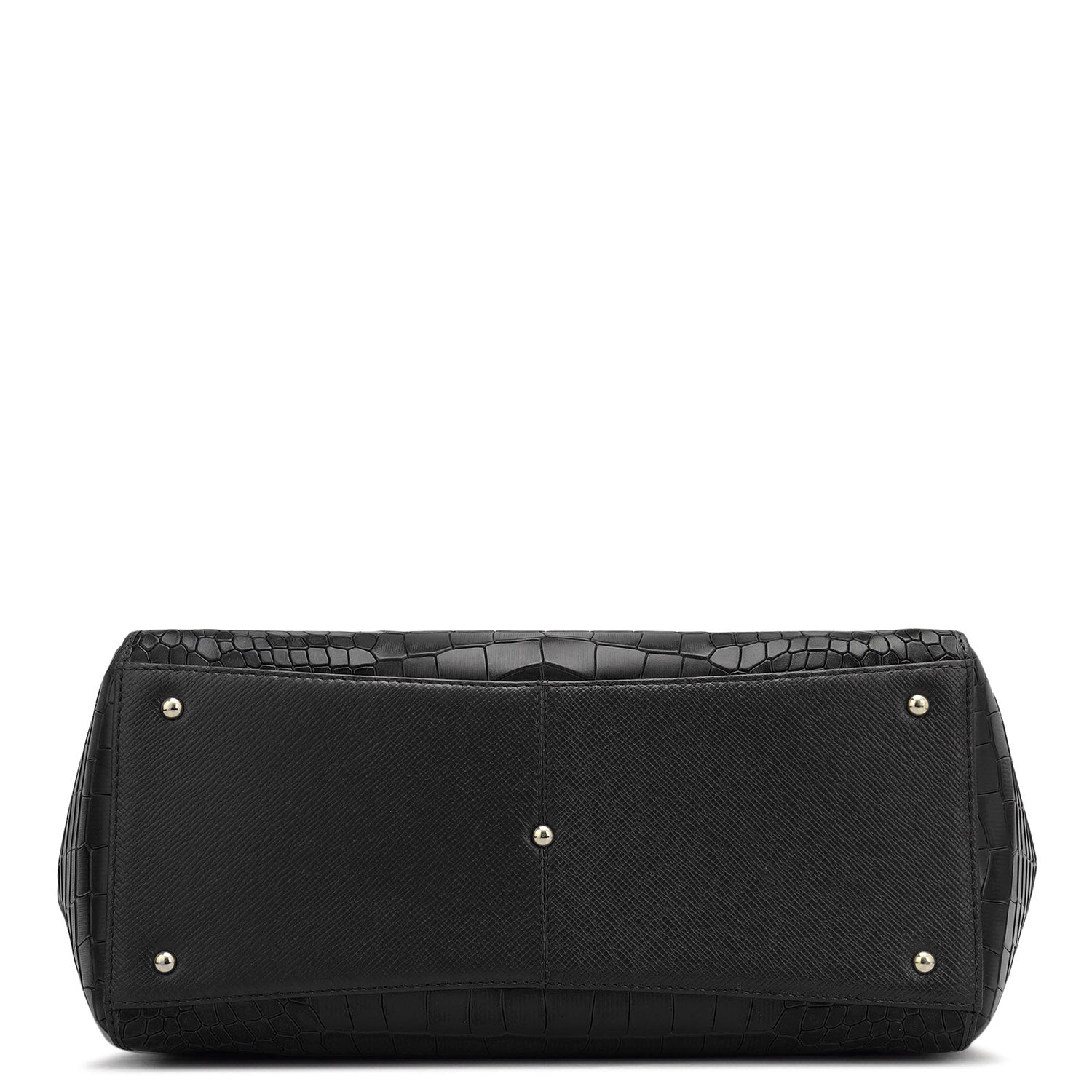 Medium Croco Franzy Leather Shoulder Bag - Black