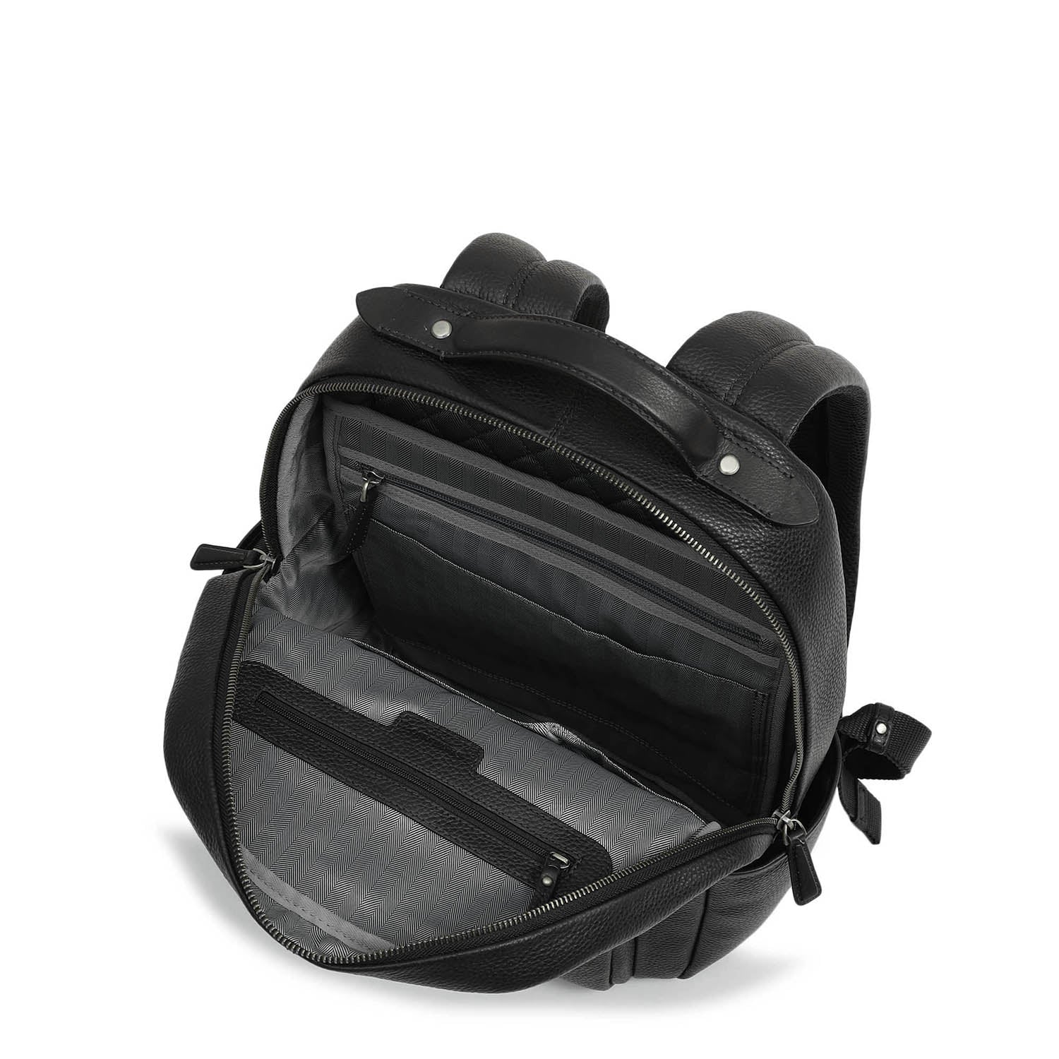 Leather backpack with a play of texture. Featuring multipurpose pockets on the exterior as well as interior to enhance utility. This functional bag is the perfect fusion of Italian craftsmanship and contemporary style. Comes with a detachable shoulder strap, and the bag can fit a standard laptop up to 14 inches.