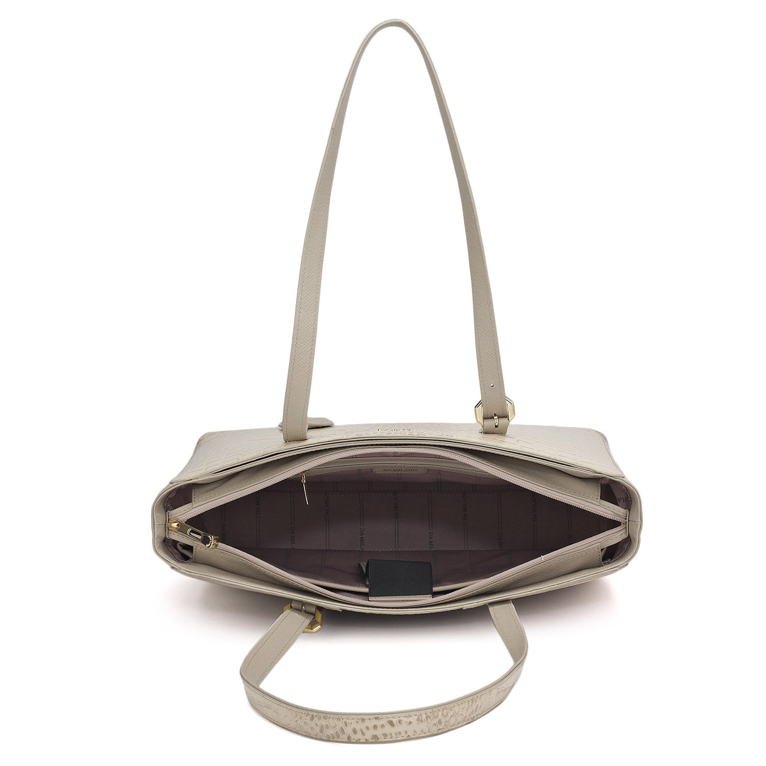With spacious interior and thoughtfully organized pockets, Da Milano's Leather Tote Bags effortlessly accommodates your everyday essentials with ease. Laptops, notebooks ,keys, smartphones and other daily need products, everything finds its place within this meticulously designed accessory. The supple leather exterior lends a luxurious touch, while the sturdy handles ensure comfortable carrying throughout your day. Comes with a detachable shoulder strap, and the bag can fit a standard laptop up to 14 inches.