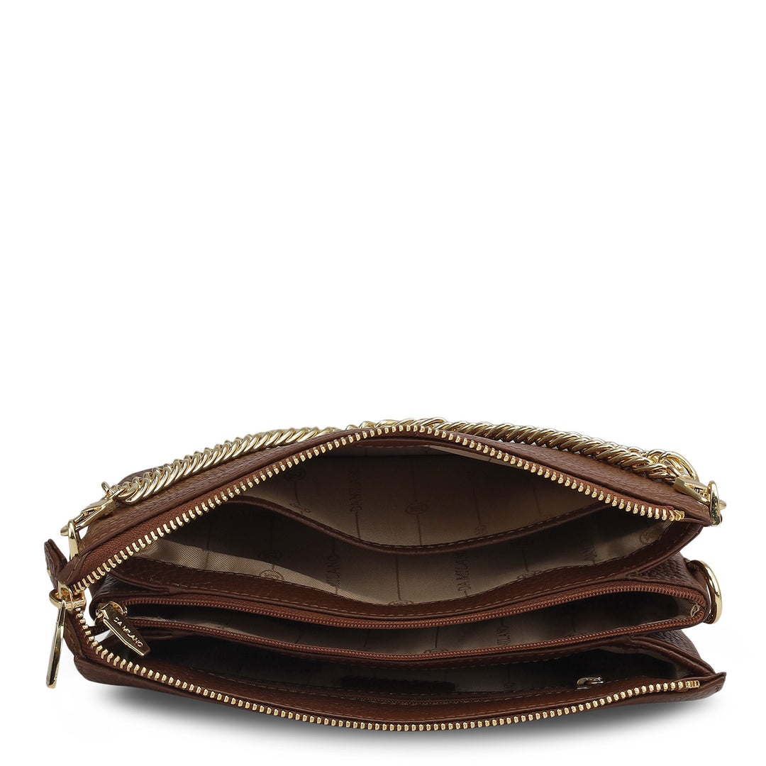 This elegant leather sling handbag combines style and functionality, featuring a sleek design and adjustable strap for versatile wear. Crafted from premium leather, it offers a spacious interior with secure zip closure, perfect for everyday essentials.