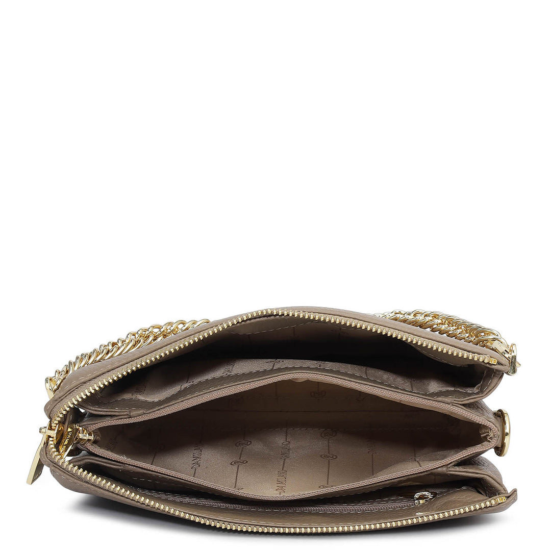 This elegant leather sling handbag combines style and functionality, featuring a sleek design and adjustable strap for versatile wear. Crafted from premium leather, it offers a spacious interior with secure zip closure, perfect for everyday essentials.