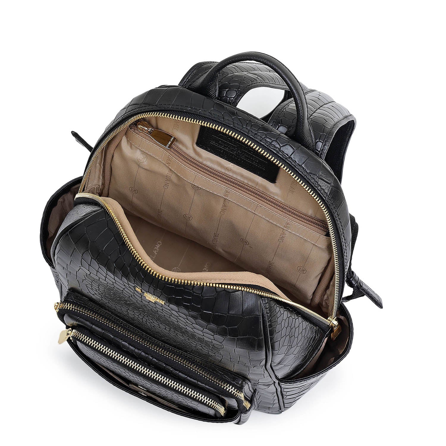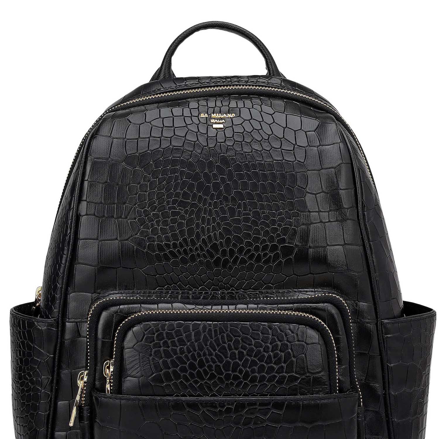 Leather backpack with a play of texture. Featuring multipurpose pockets on the exterior as well as interior to enhance utility. This functional bag is the perfect fusion of Italian craftsmanship and contemporary style.