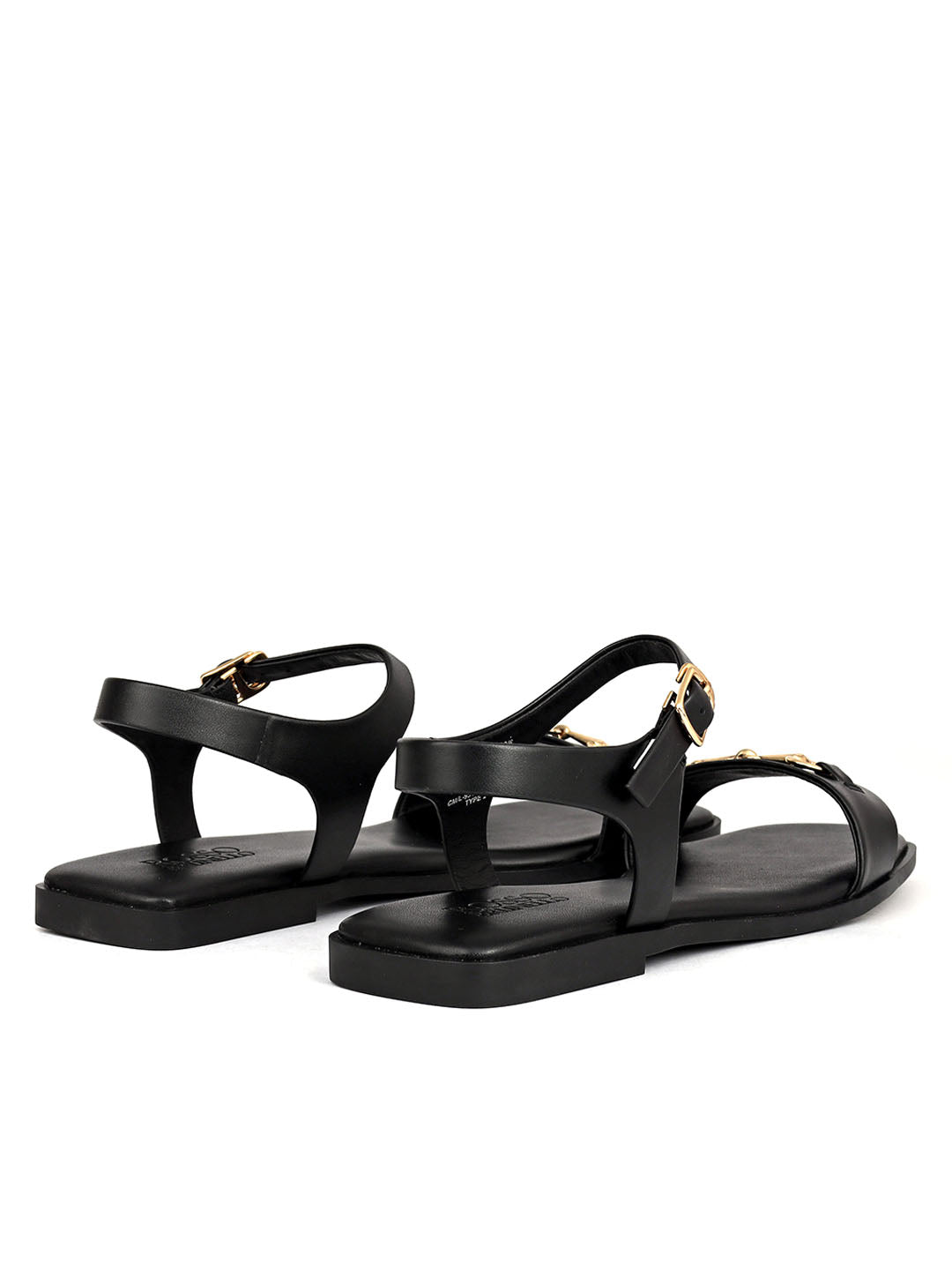 Stylish and comfortable ladies sandals featuring a chic Horsebit accent. With an adjustable back strap for a perfect fit, these flats offer all-day comfort and a trendy look for any occasion. Perfect for both casual and semi-formal wear, adding elegance to your every step.