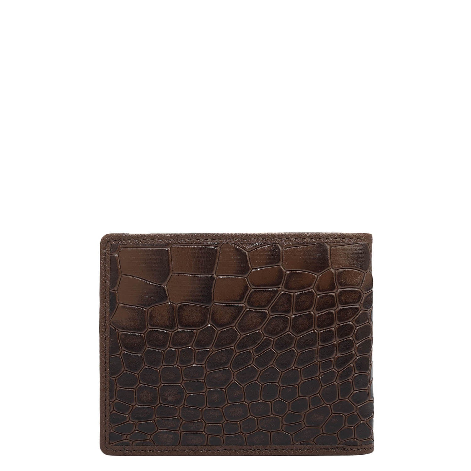 Crafted from textured leather, Da Milano men's bifold wallet offers a compact yet stylish design. Featuring easy-to-organize compartments, card slots, and pockets, it combines practicality with elegance. Subtle branding on the front enhances its refined appearance.