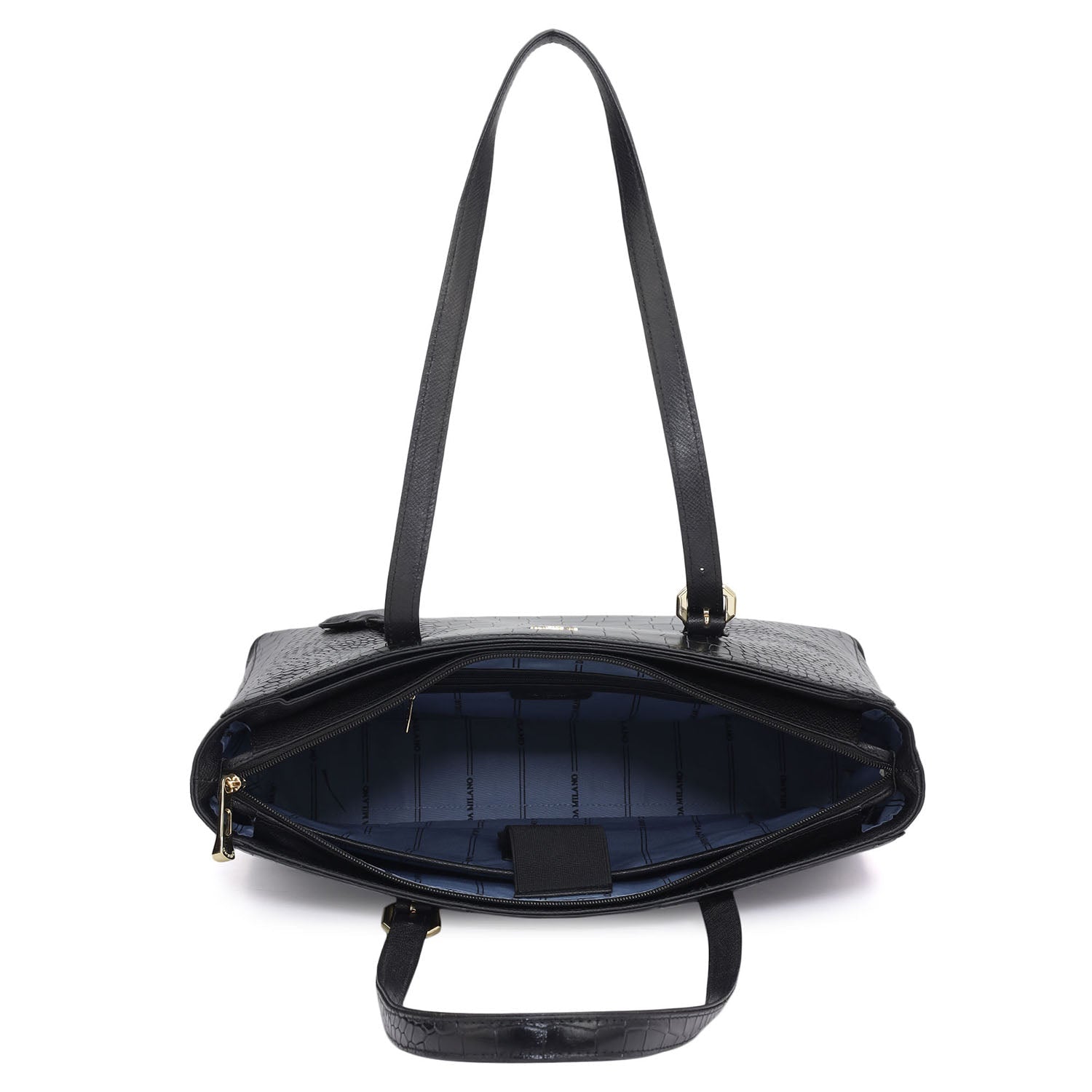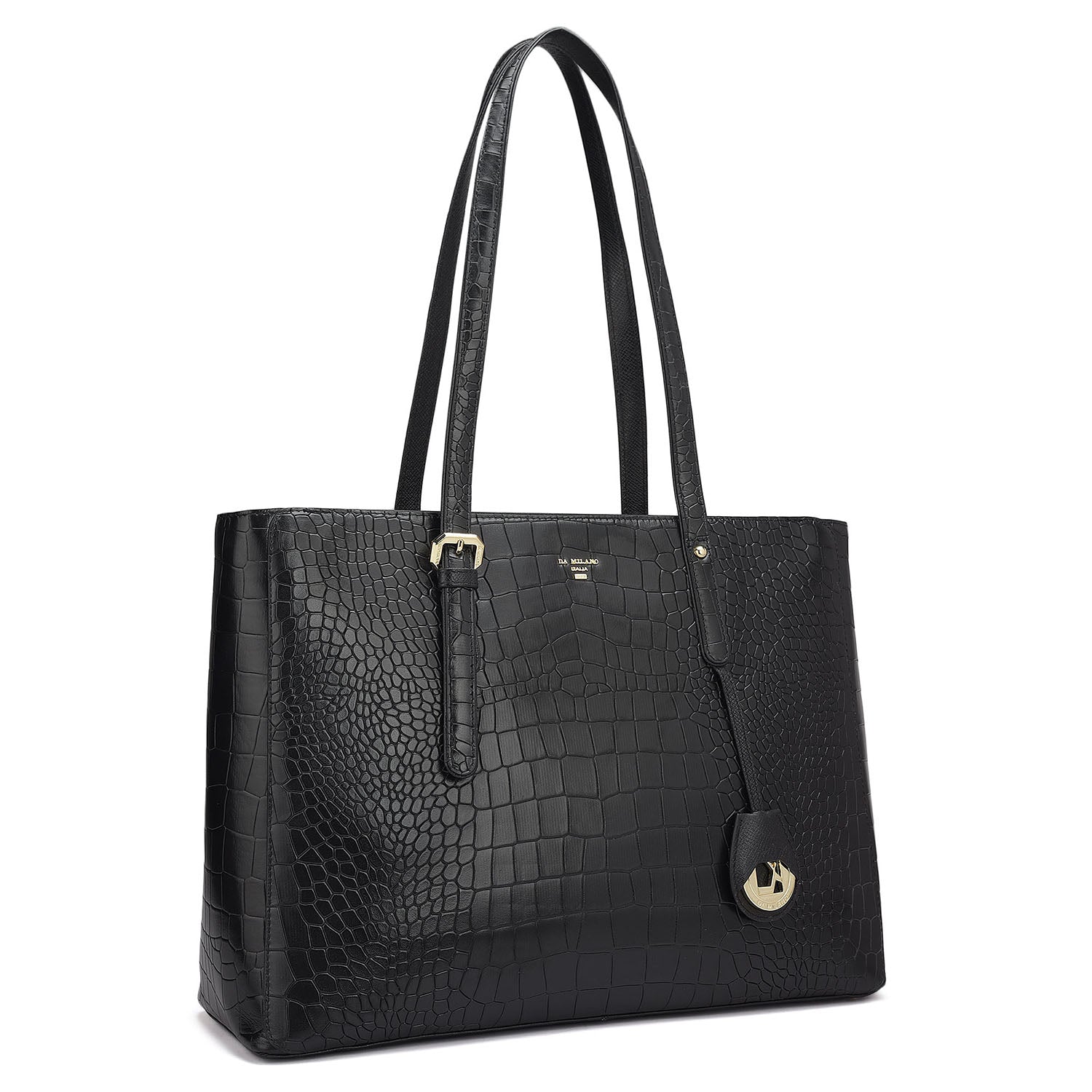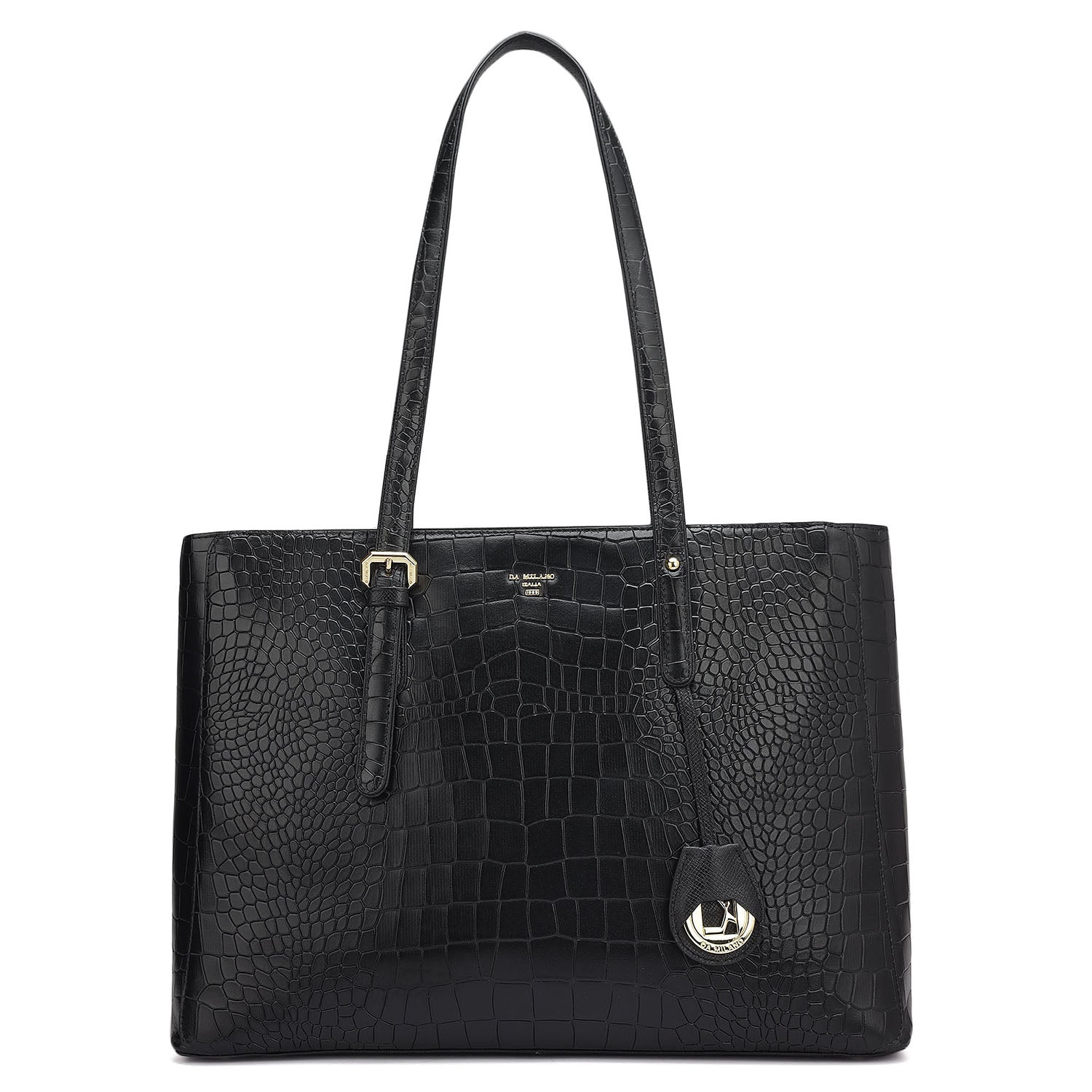 With spacious interior and thoughtfully organized pockets, Da Milano's Leather Tote Bags effortlessly accommodates your everyday essentials with ease. Laptops, notebooks ,keys, smartphones and other daily need products, everything finds its place within this meticulously designed accessory. The supple leather exterior lends a luxurious touch, while the sturdy handles ensure comfortable carrying throughout your day. Comes with a detachable shoulder strap, and the bag can fit a standard laptop up to 14 inches.