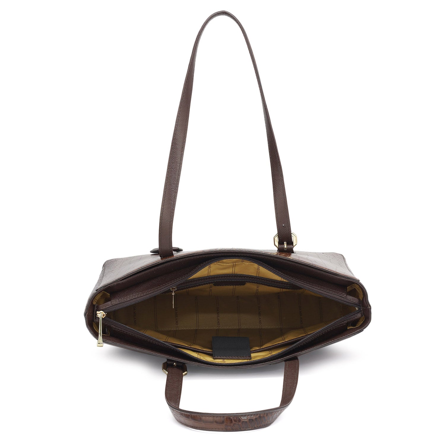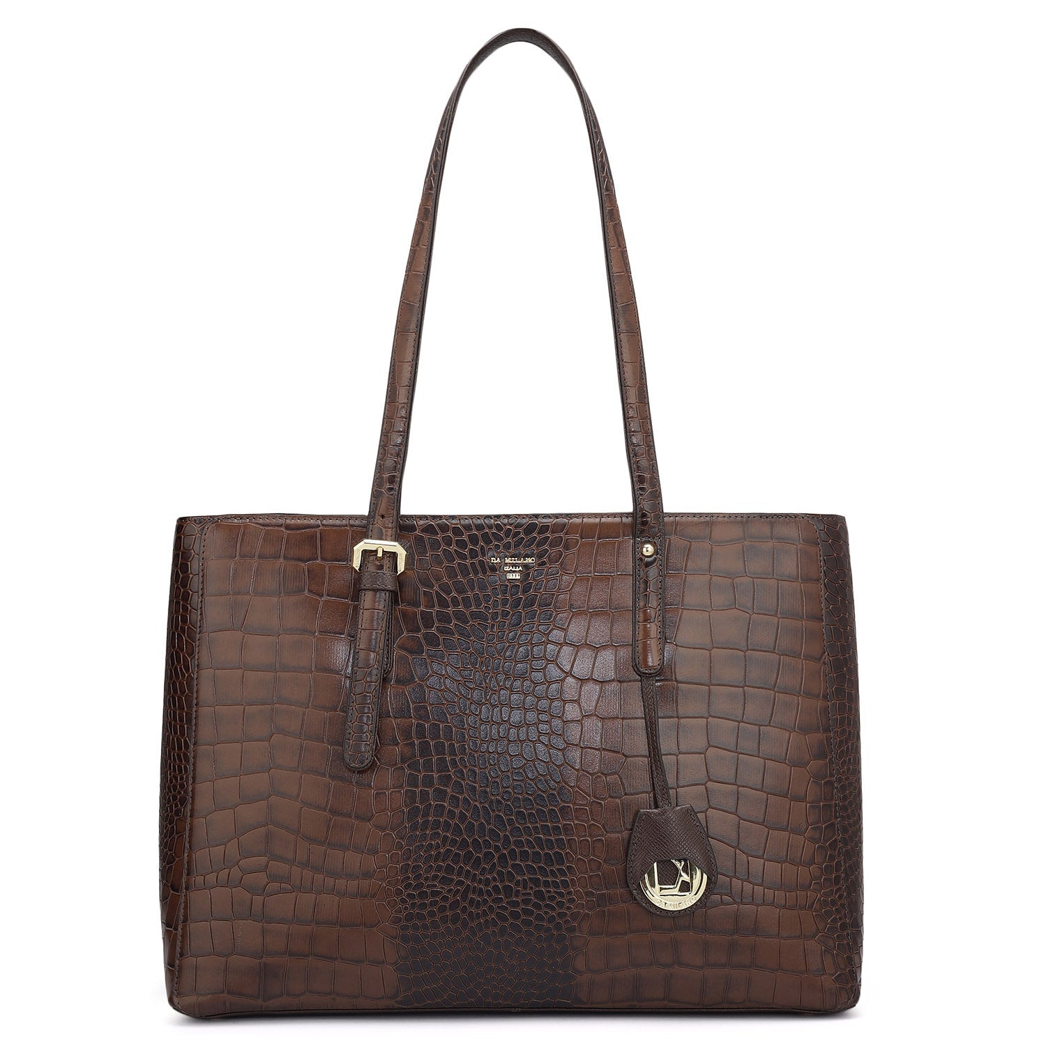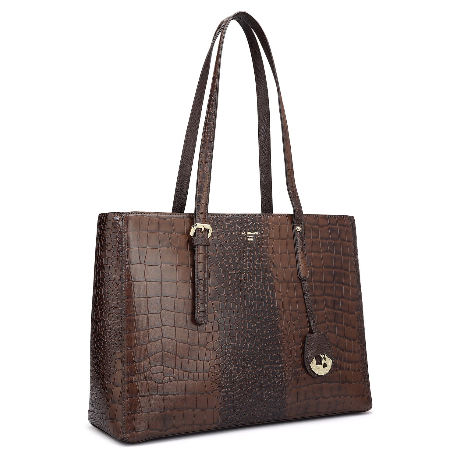 With spacious interior and thoughtfully organized pockets, Da Milano's Leather Tote Bags effortlessly accommodates your everyday essentials with ease. Laptops, notebooks ,keys, smartphones and other daily need products, everything finds its place within this meticulously designed accessory. The supple leather exterior lends a luxurious touch, while the sturdy handles ensure comfortable carrying throughout your day. Comes with a detachable shoulder strap, and the bag can fit a standard laptop up to 14 inches.