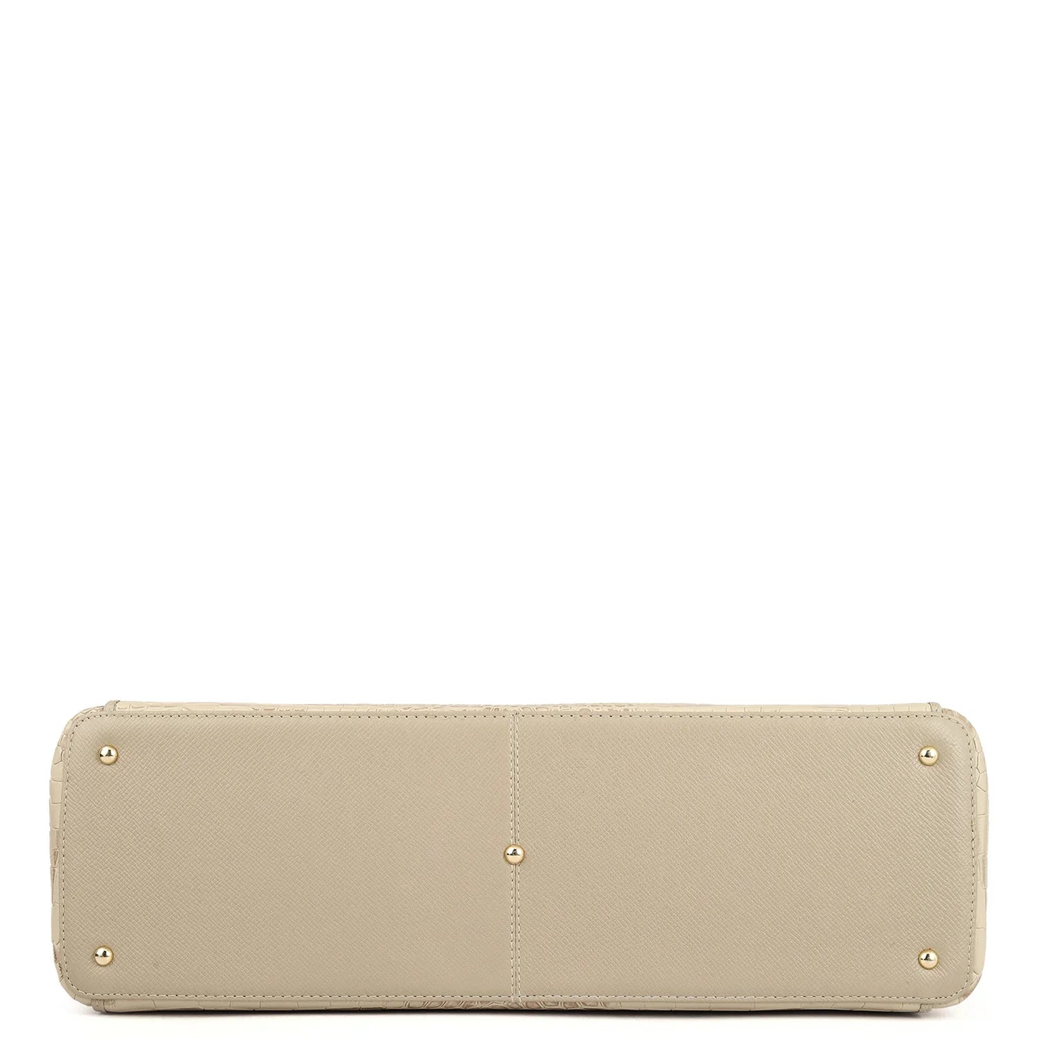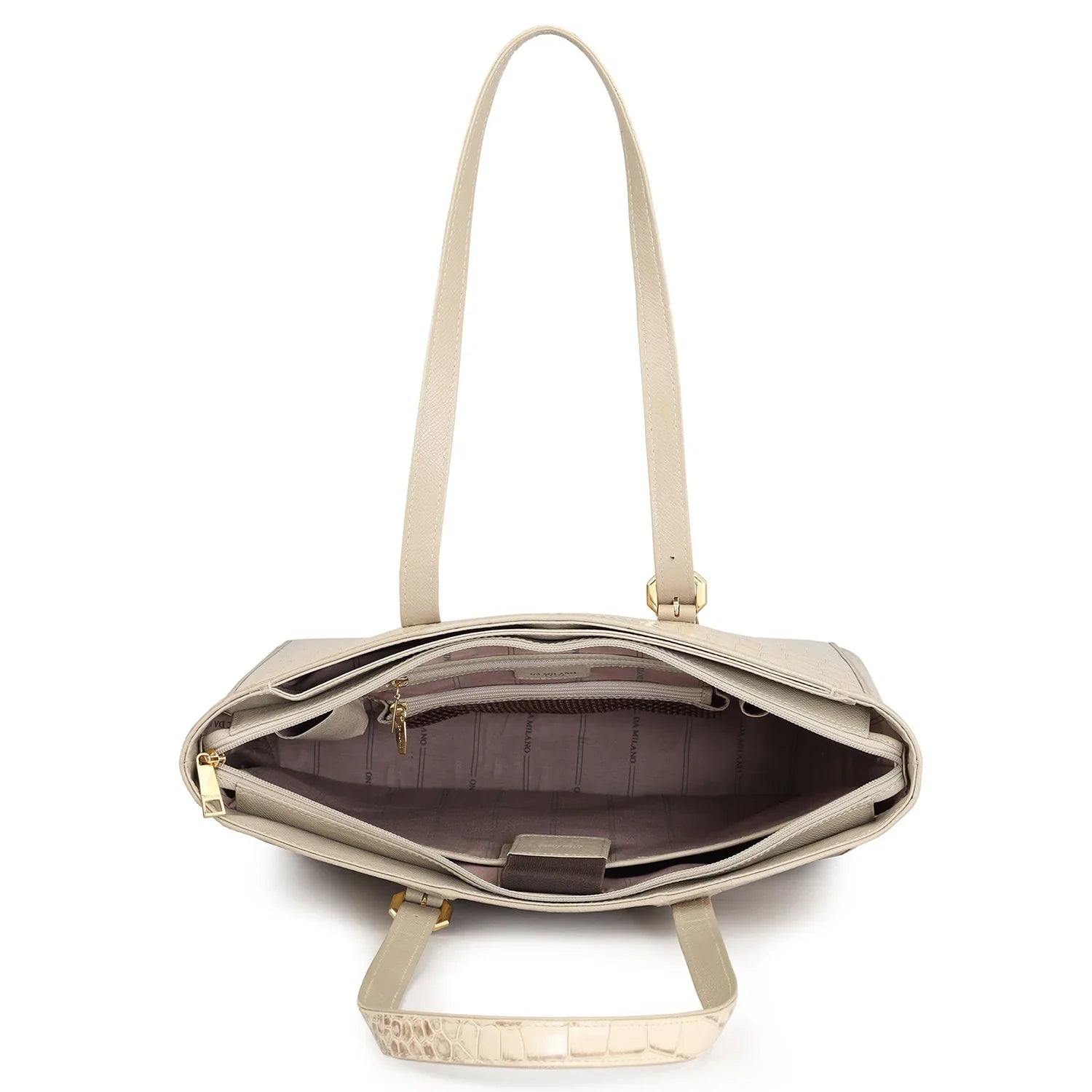 Designed to enhance your style quotient, this piece with its handles and emphasis on utility is a statement in itself. The dual leather texture effect gives it a much needed sophisticated look. The structured silhouette lets it stand out amongst all.