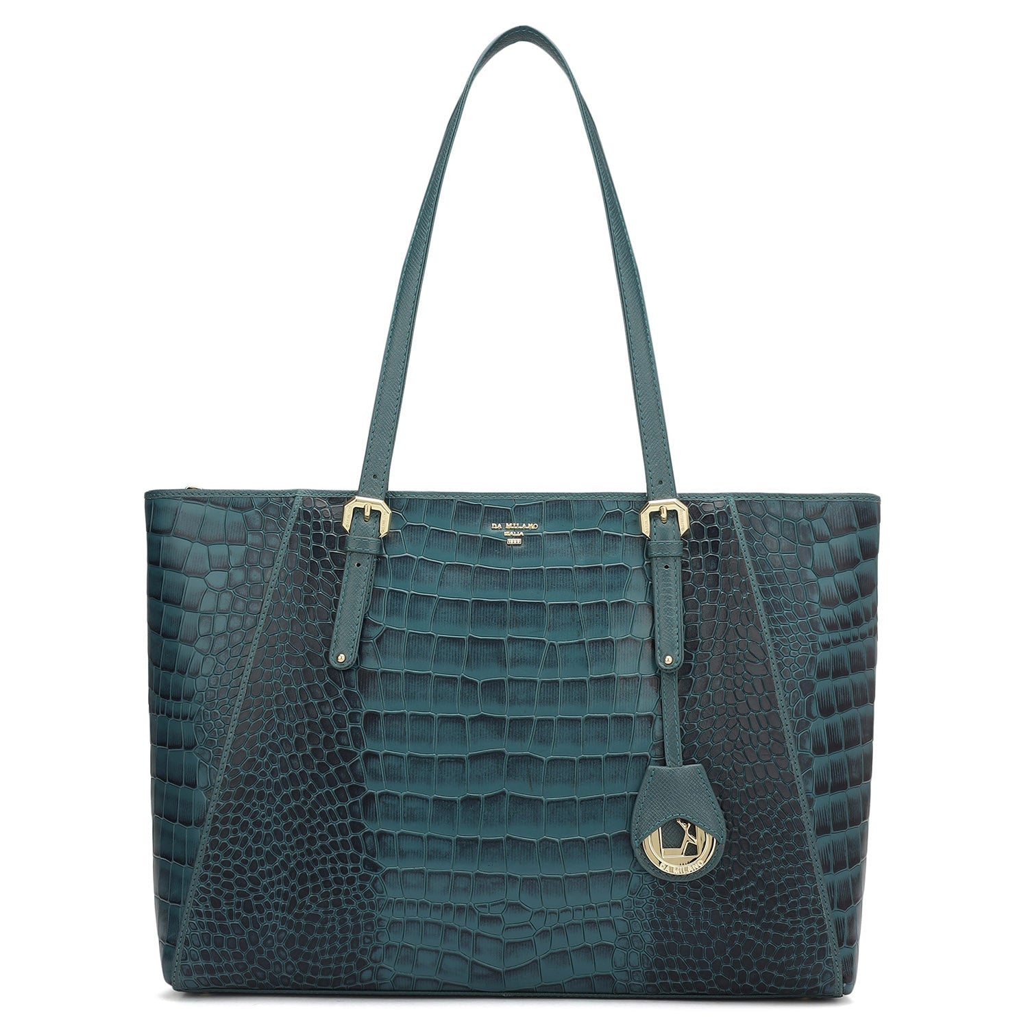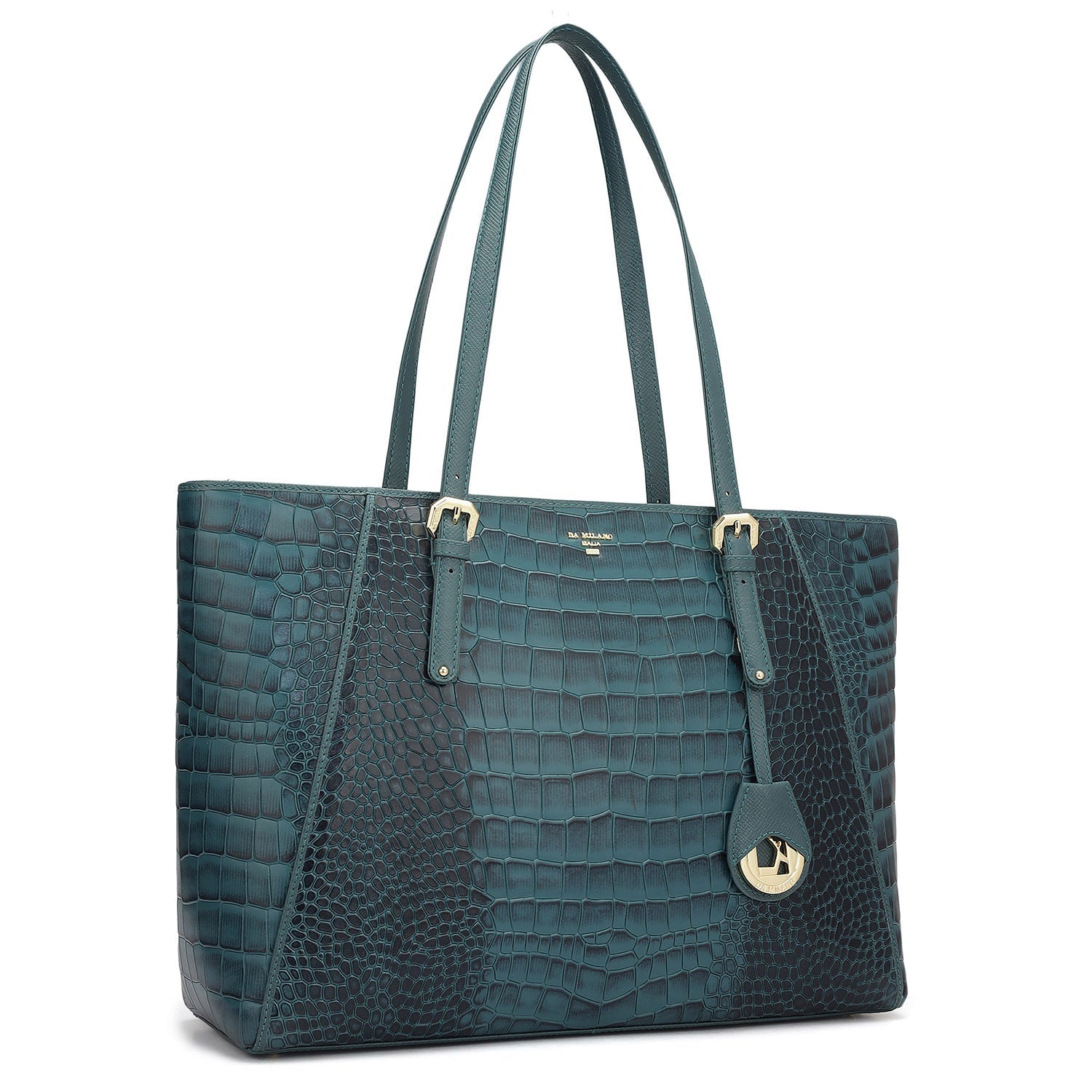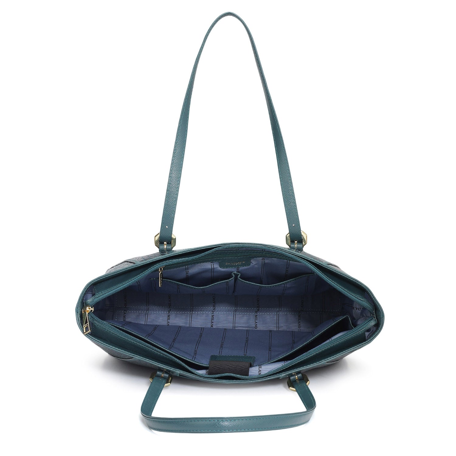 With spacious interior and thoughtfully organized pockets, Da Milano's Leather Tote Bags effortlessly accommodates your everyday essentials with ease. Laptops, notebooks ,keys, smartphones and other daily need products, everything finds its place within this meticulously designed accessory. The supple leather exterior lends a luxurious touch, while the sturdy handles ensure comfortable carrying throughout your day. This bag can fit a standard laptop of up to 15".
