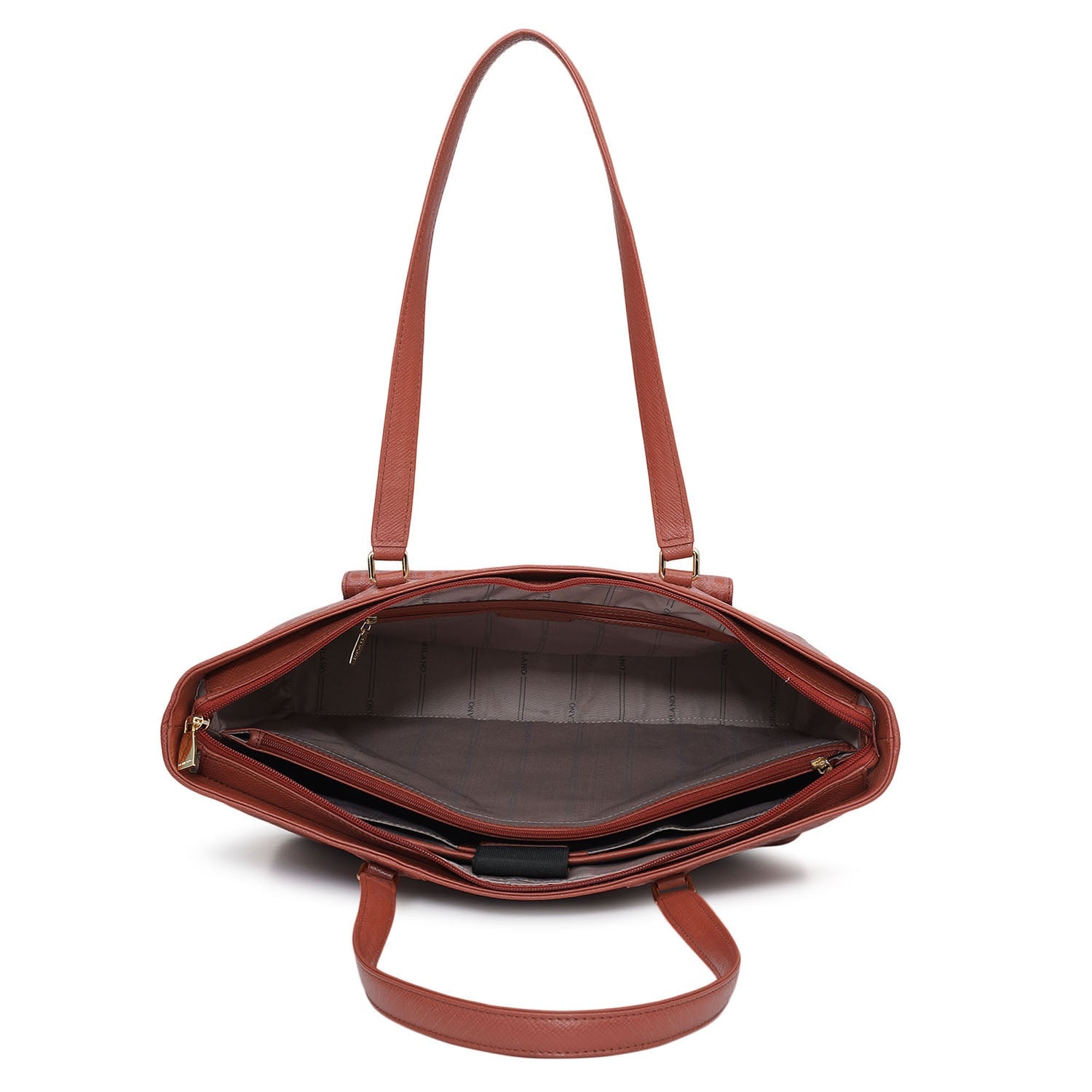 With spacious interior and thoughtfully organized pockets, Da Milano's Leather Tote Bags effortlessly accommodates your everyday essentials with ease. Laptops, notebooks ,keys, smartphones and other daily need products, everything finds its place within this meticulously designed accessory. The supple leather exterior lends a luxurious touch, while the sturdy handles ensure comfortable carrying throughout your day. This bag can fit a standard laptop up to 14 inches.
