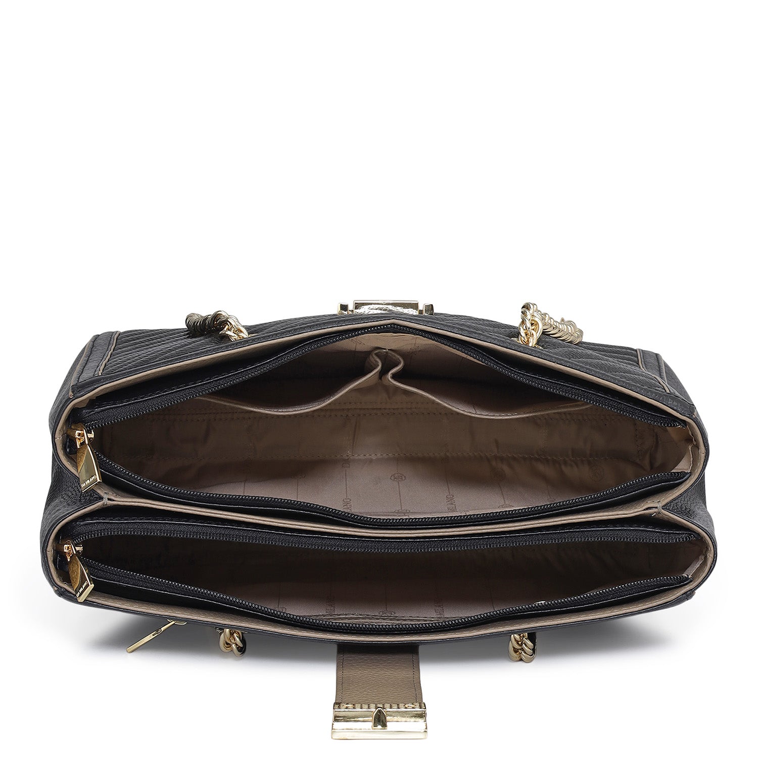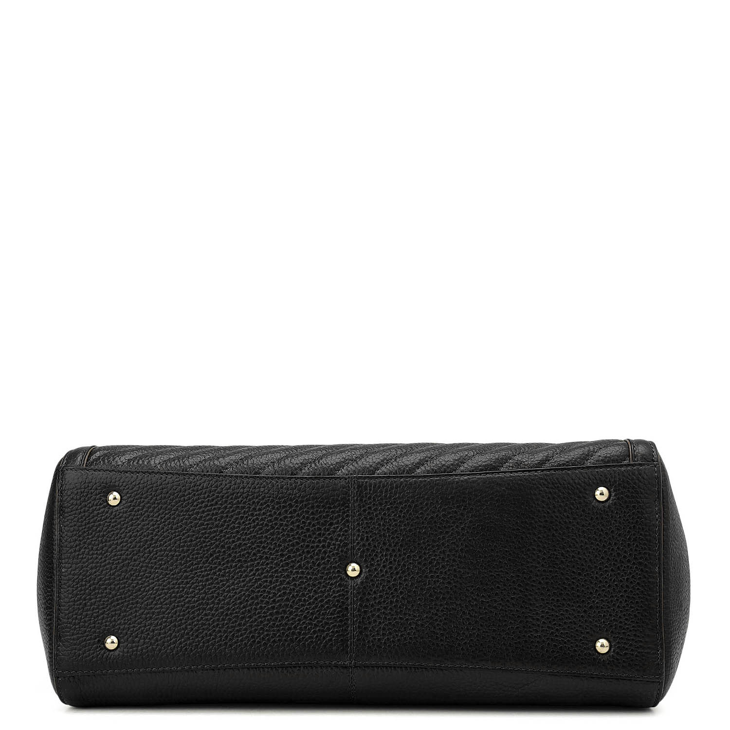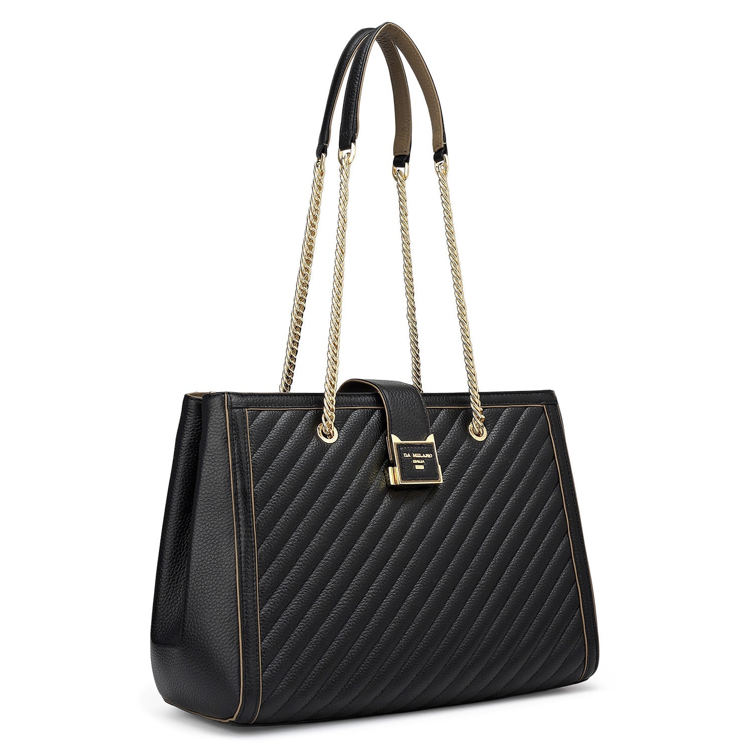 Medium Wax Stripe Leather Shoulder Bag - Black