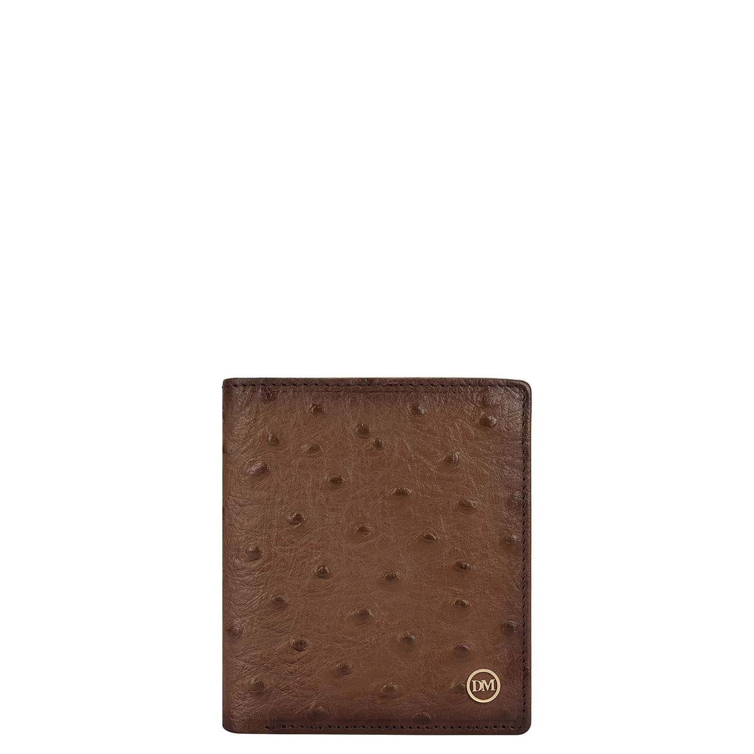 The Bifold Vertical Men's Wallet is crafted in ostrich-pattern embossed leather, lending character to its silhouette. Rendered in a warm mocha tone, the vertical design serves as an everyday essential.