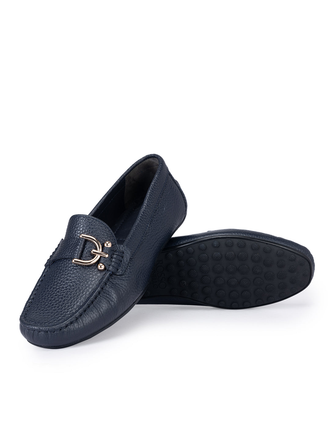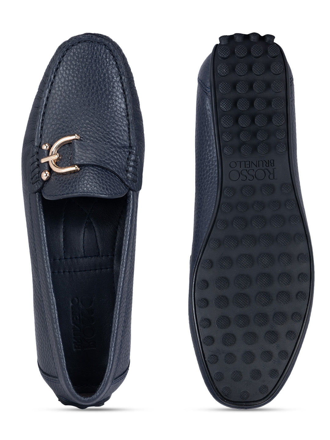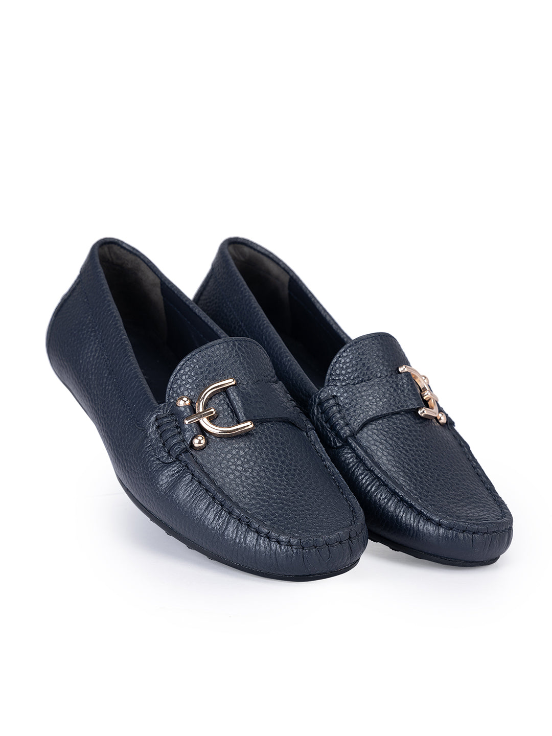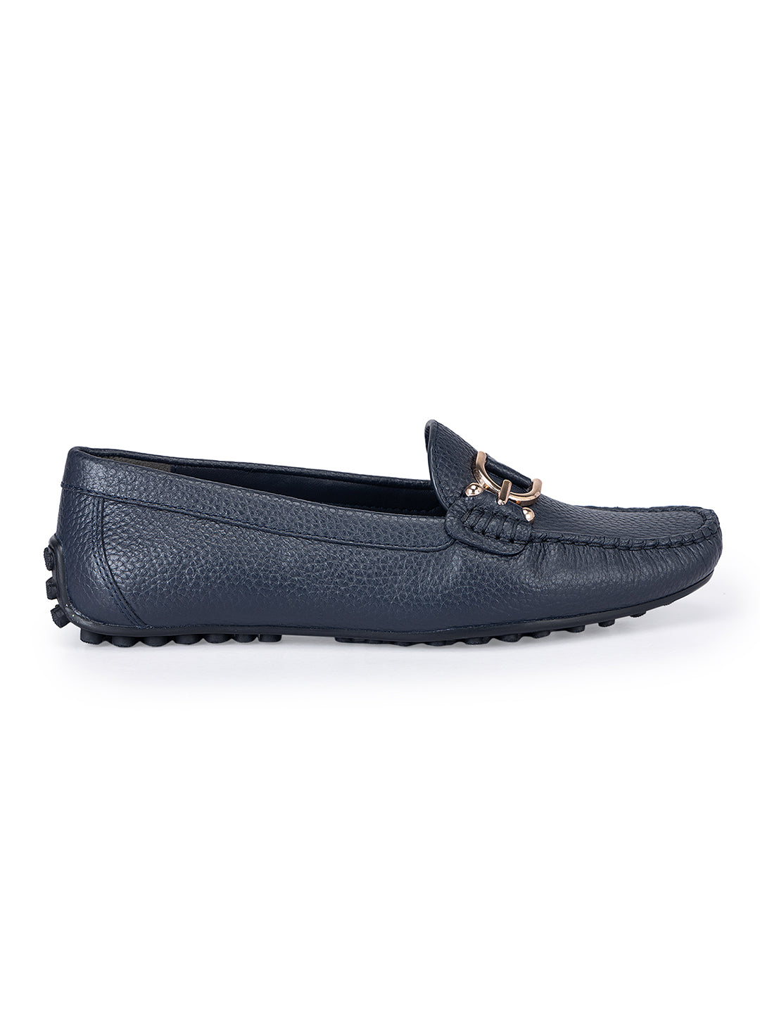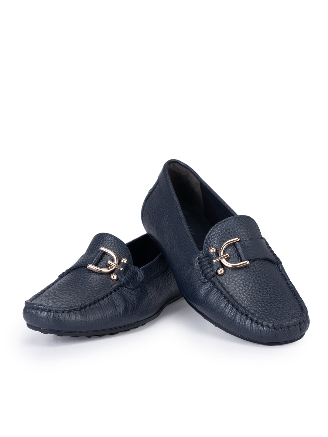 Navy Metal Embellished Moccasins