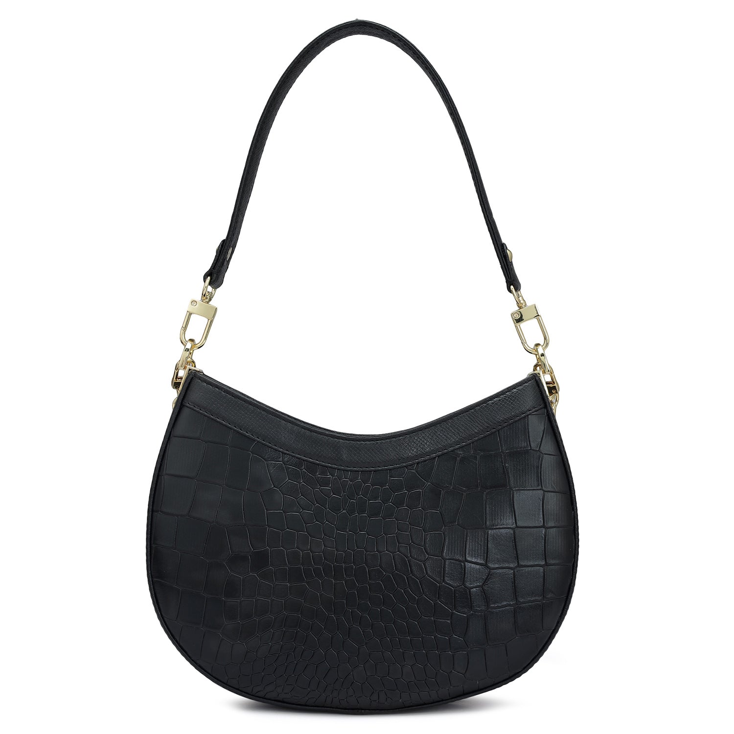Small Croco Leather Baguette - Black