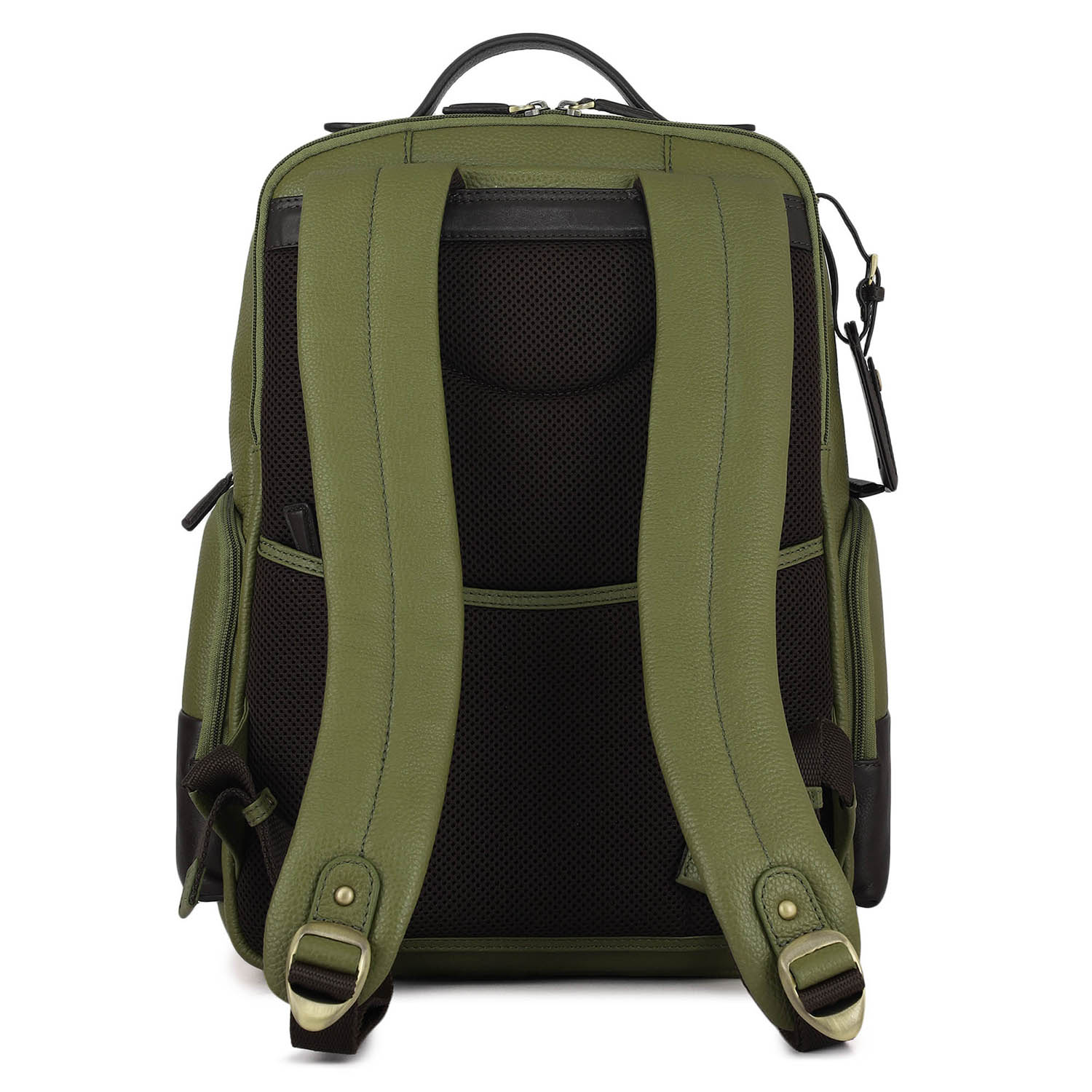 Leather backpack with a play of texture. Featuring multipurpose pockets on the exterior as well as interior to enhance utility. This functional bag is the perfect fusion of Italian craftsmanship and contemporary style. This bag can fit a standard laptop up to 15 inches.